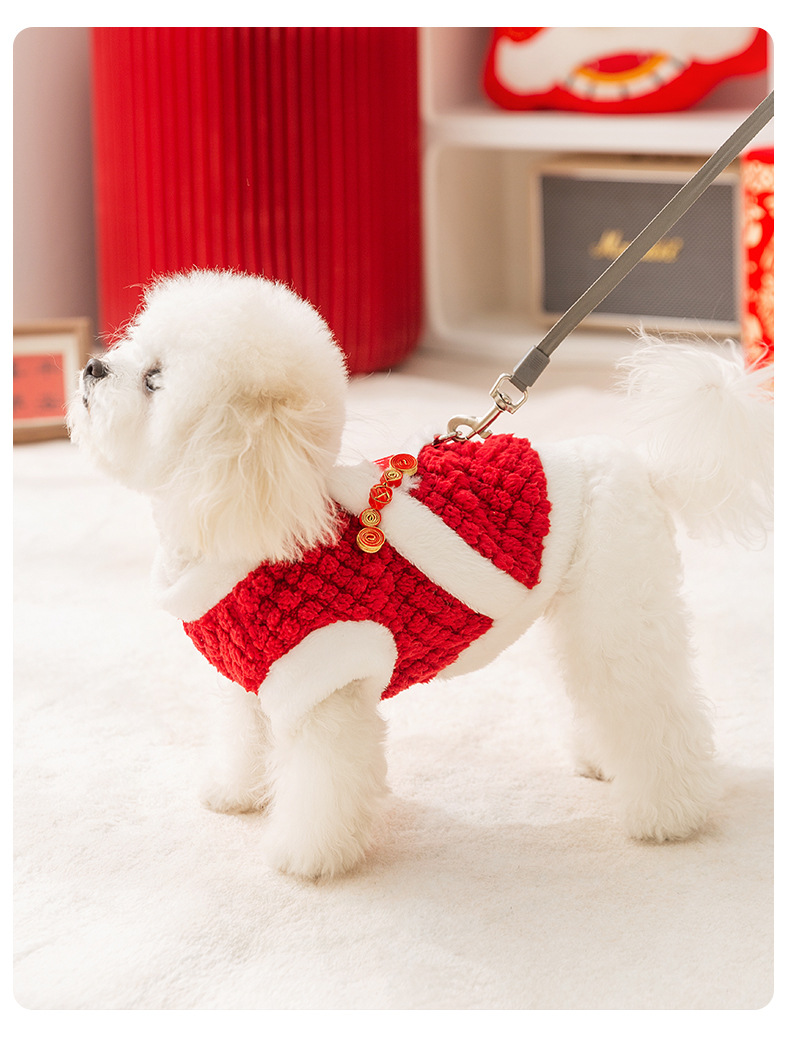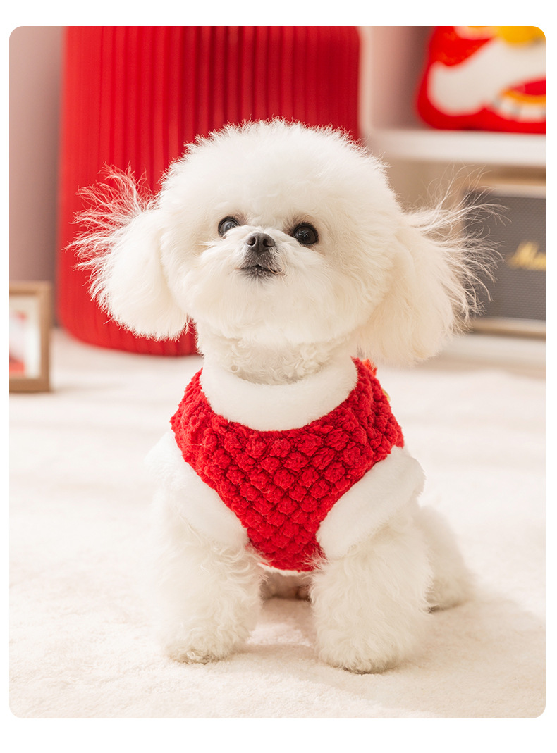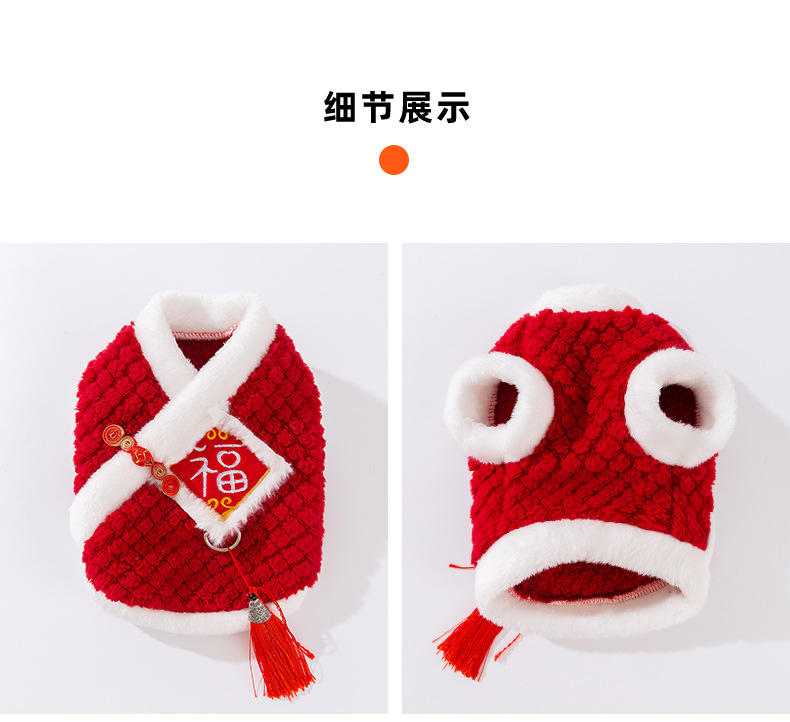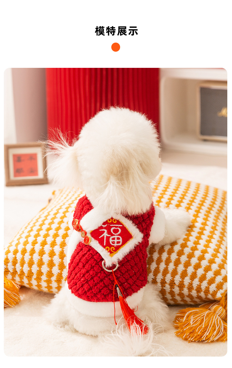 Otoño y invierno para perros Fu Fu a la primavera de Año Nuevo, ropa de terciopelo, perros pequeños y gatos, ropa de mascotas de Año Nuevo.