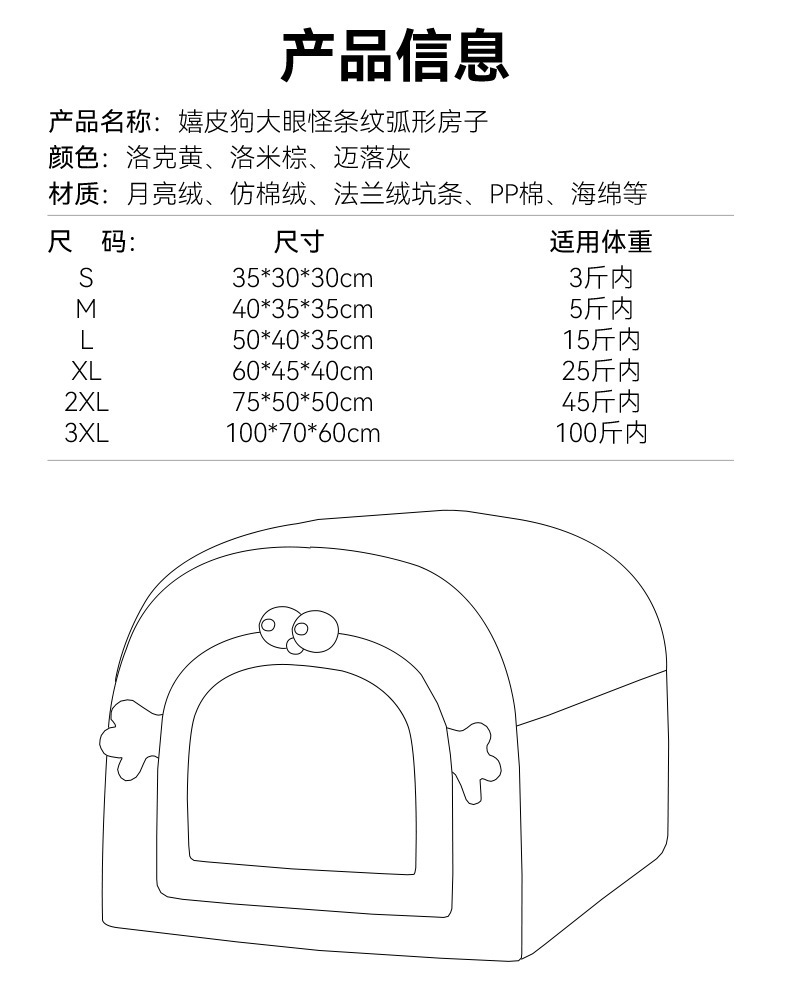| Color | S (35 * 30 * 30cm peso recomendado dentro de 3 kg), M (40 * 35 * 35cm peso recomendado dentro de 5 kg), L (50 * 40 * 35cm peso recomendado dentro de 15 kg), XL (60 * 45 * 40cm peso recomendado dentro de 25 kg), XXL (75 * 50 * 50cm peso recomendado dentro de 45 kg), 3xl (100 * 70 * 60cm peso recomendado dentro de 100 kg) |