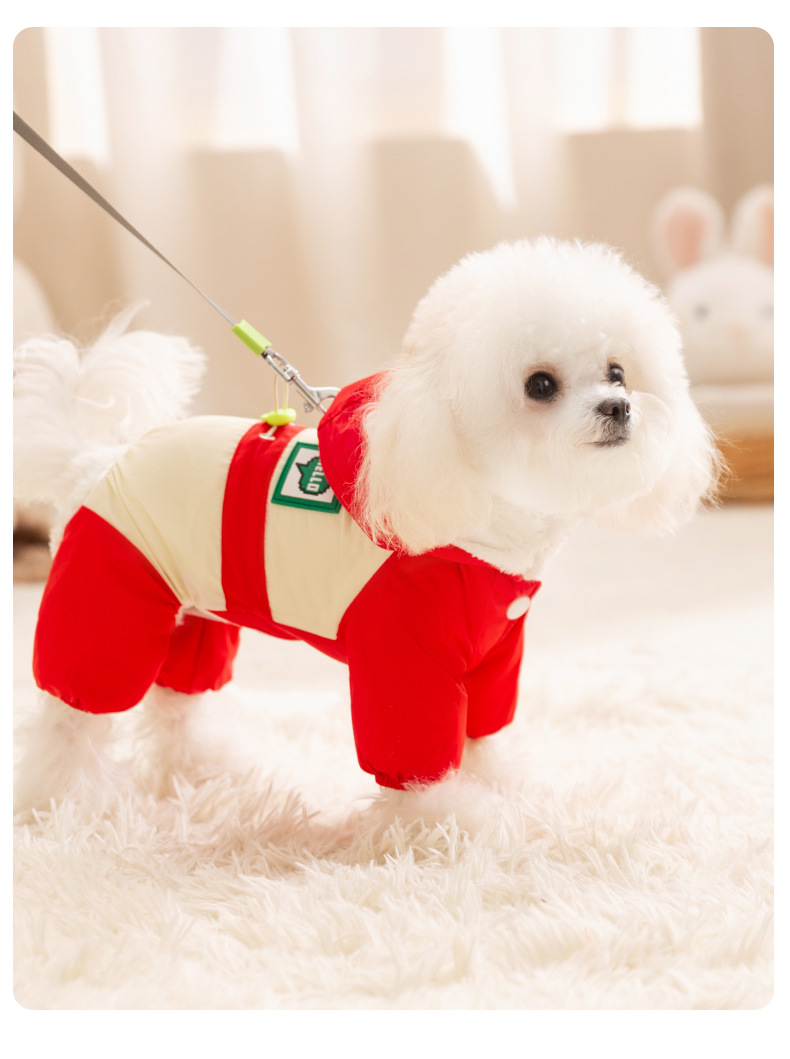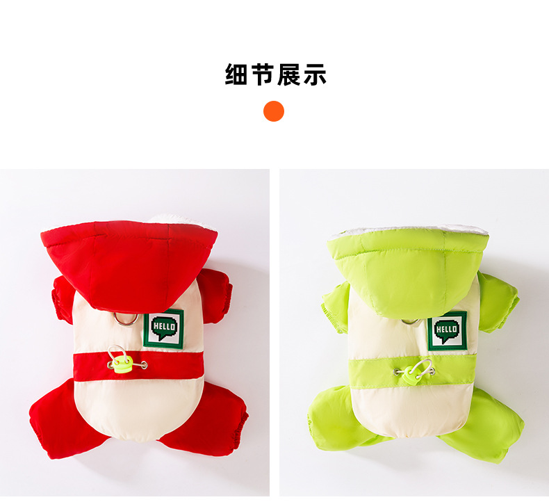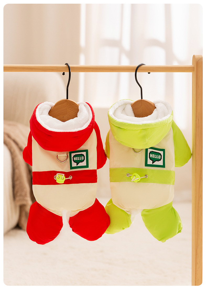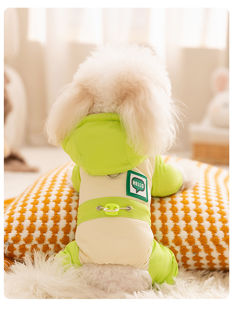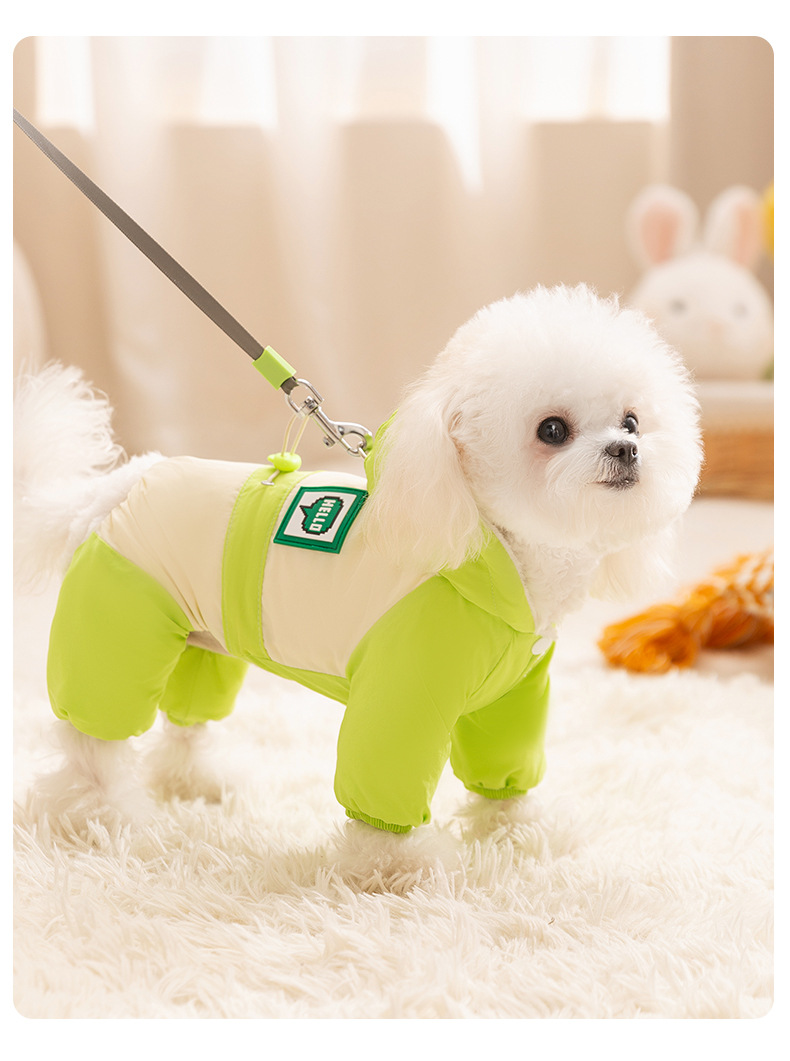 Otoño y invierno para perros gruesos perros pequeños dopamina color contrastante empalme cuatro patas carga ropa de algodón gato ropa de perro