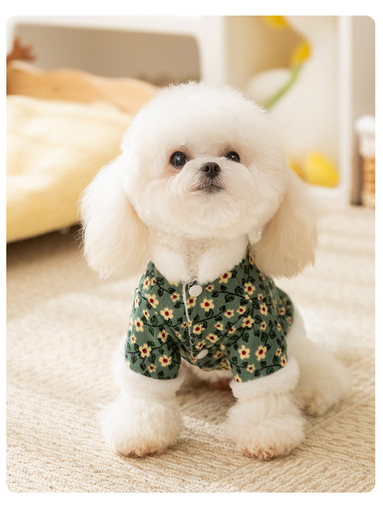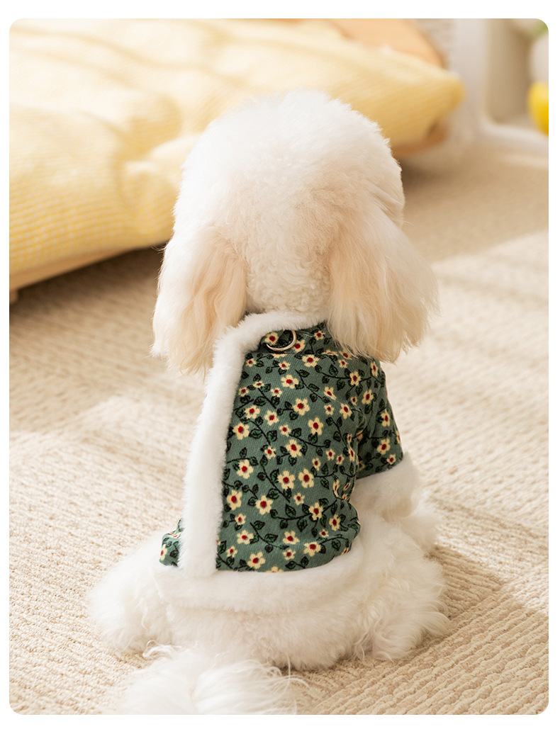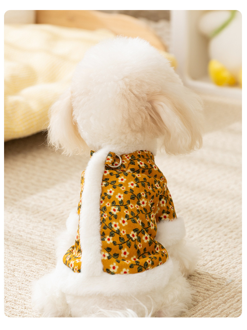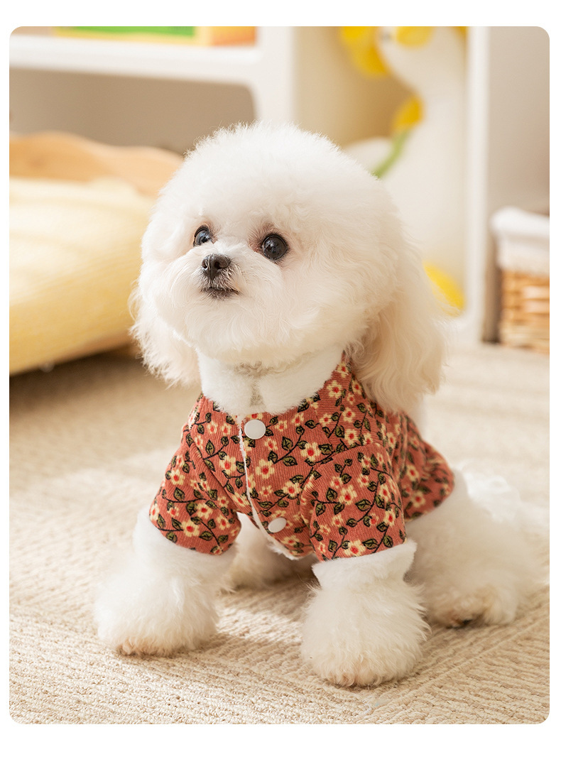 Otoño y invierno retro tracción de flores de algodón de dos patas perros pequeños que osos de peluche dos patas gruesas ropa de perro de mascota