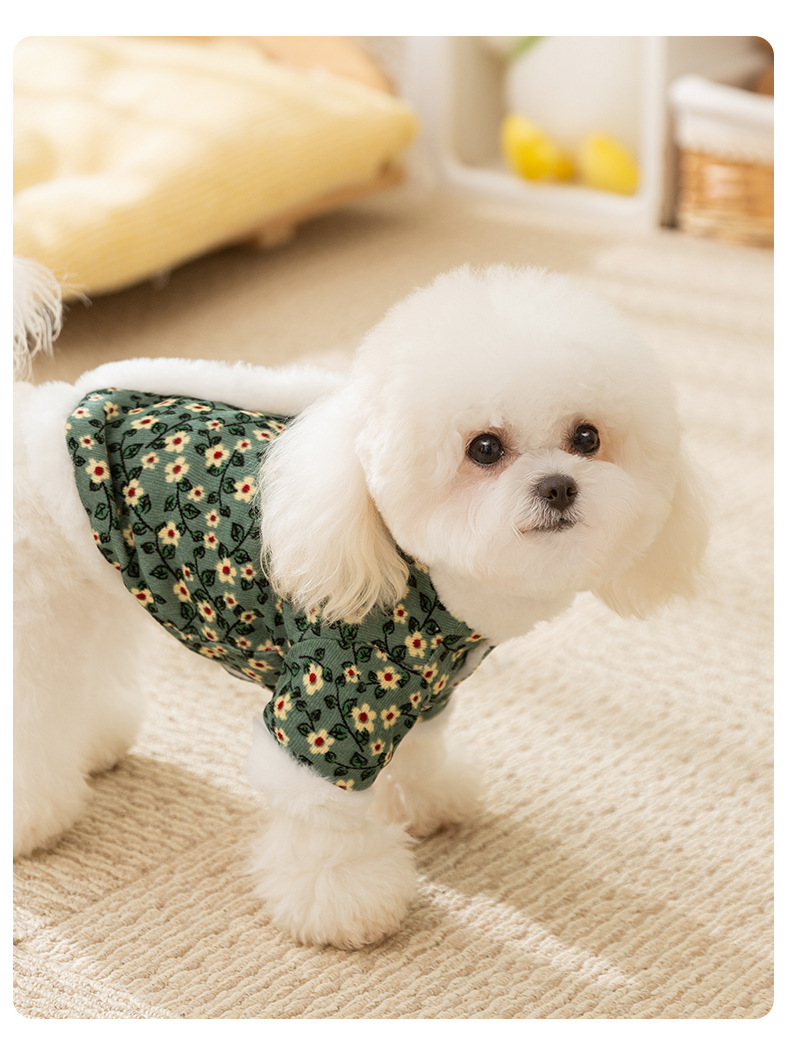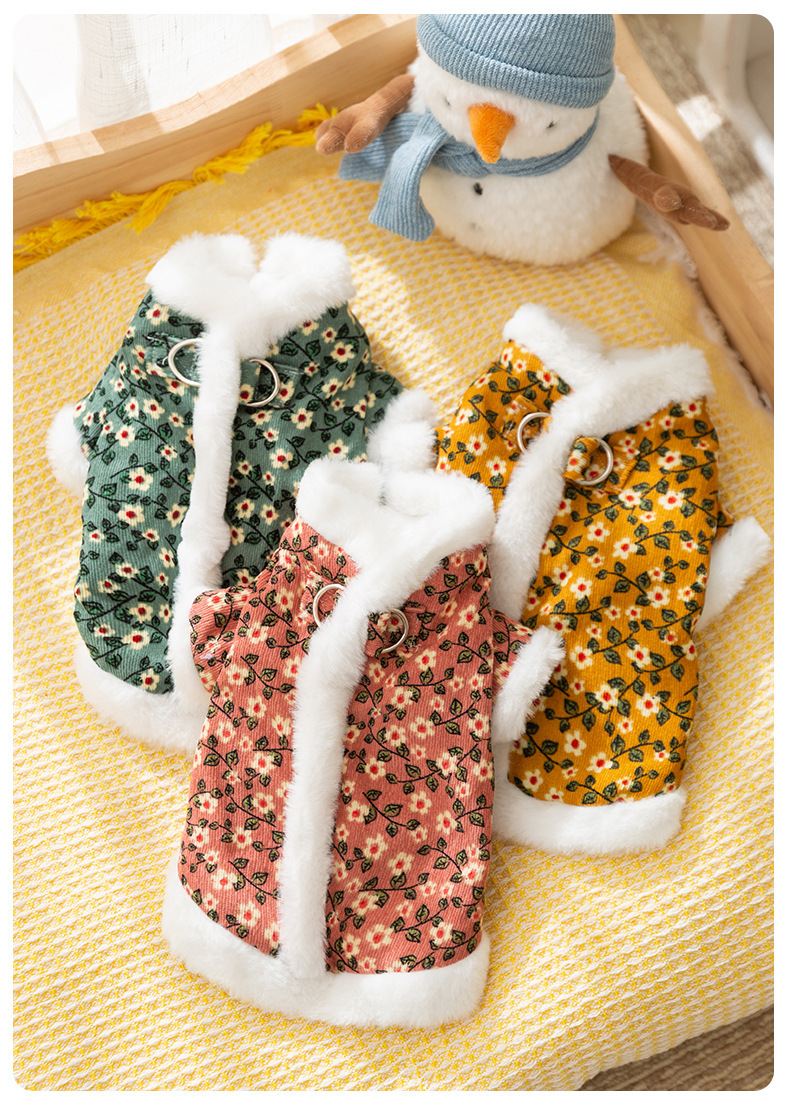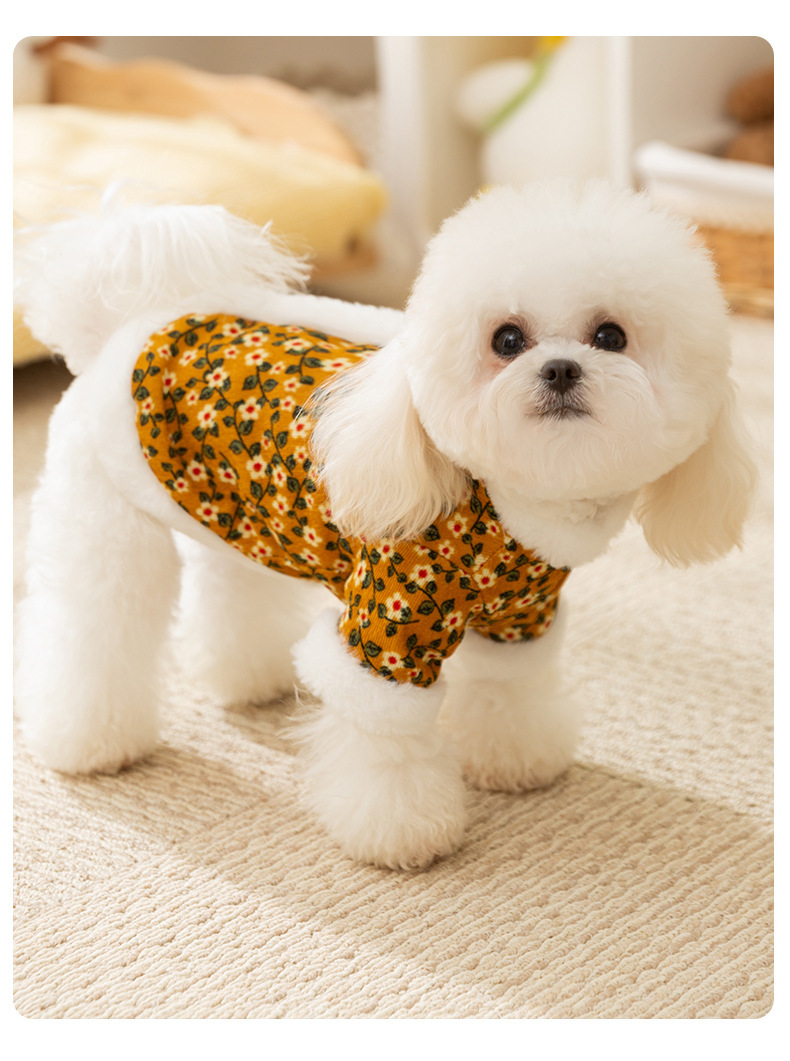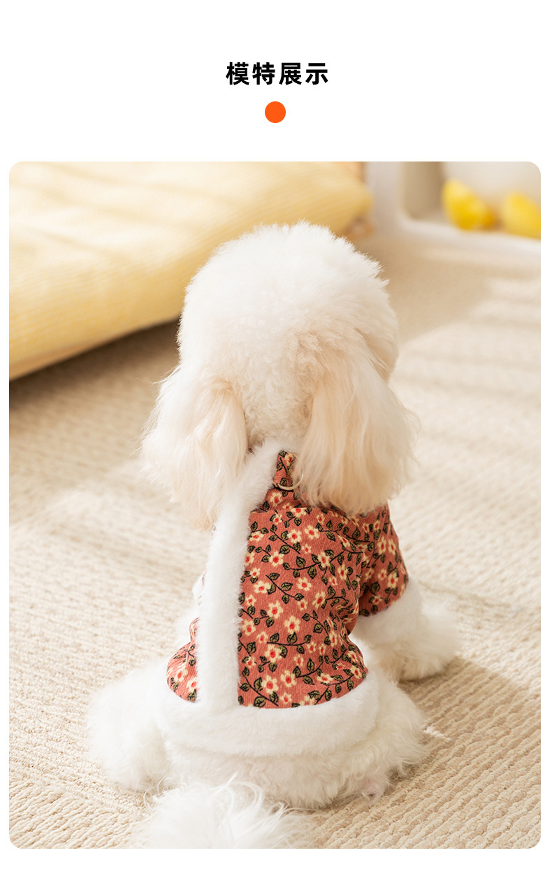 Otoño y invierno retro tracción de flores de algodón de dos patas perros pequeños que osos de peluche dos patas gruesas ropa de perro de mascota