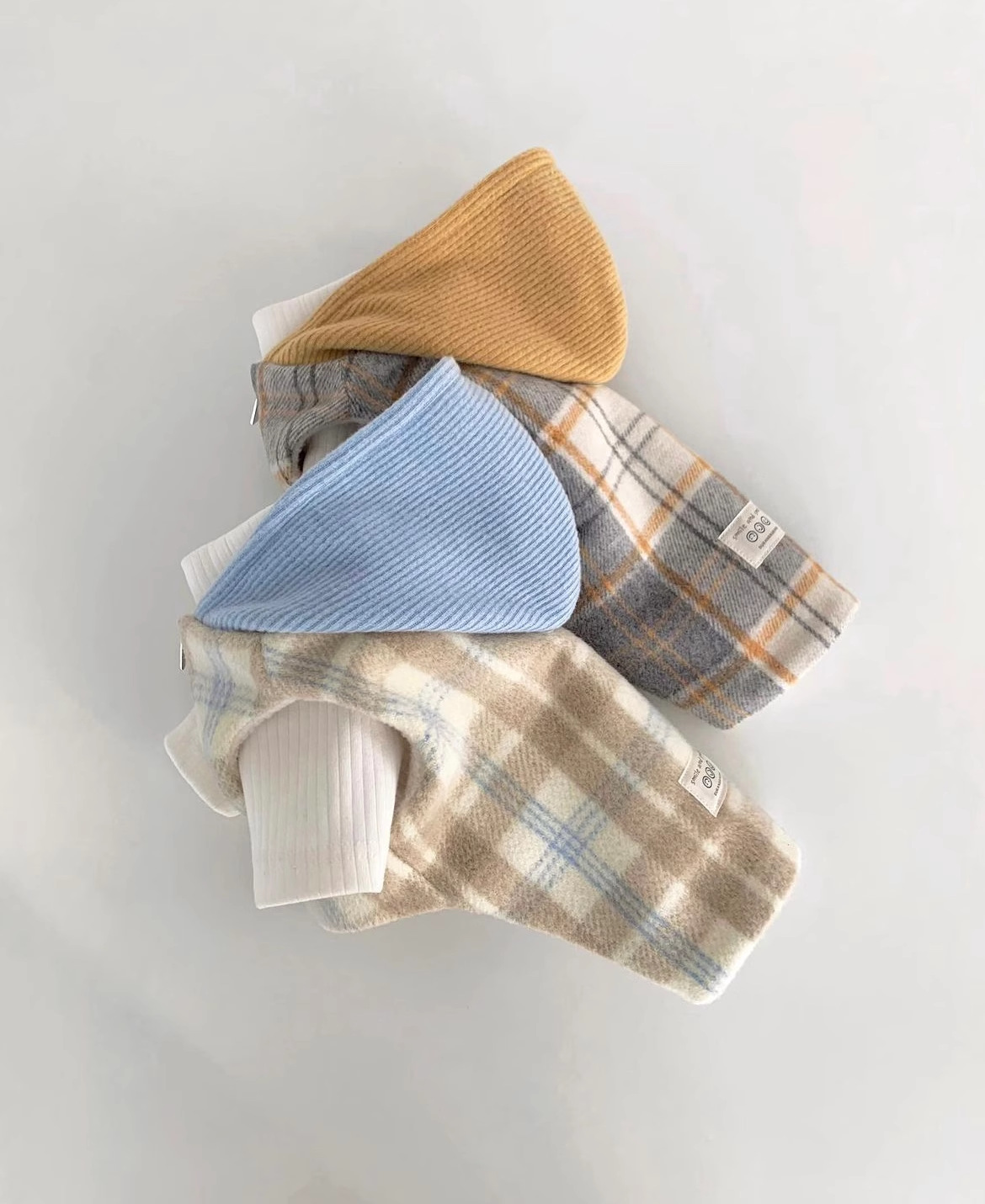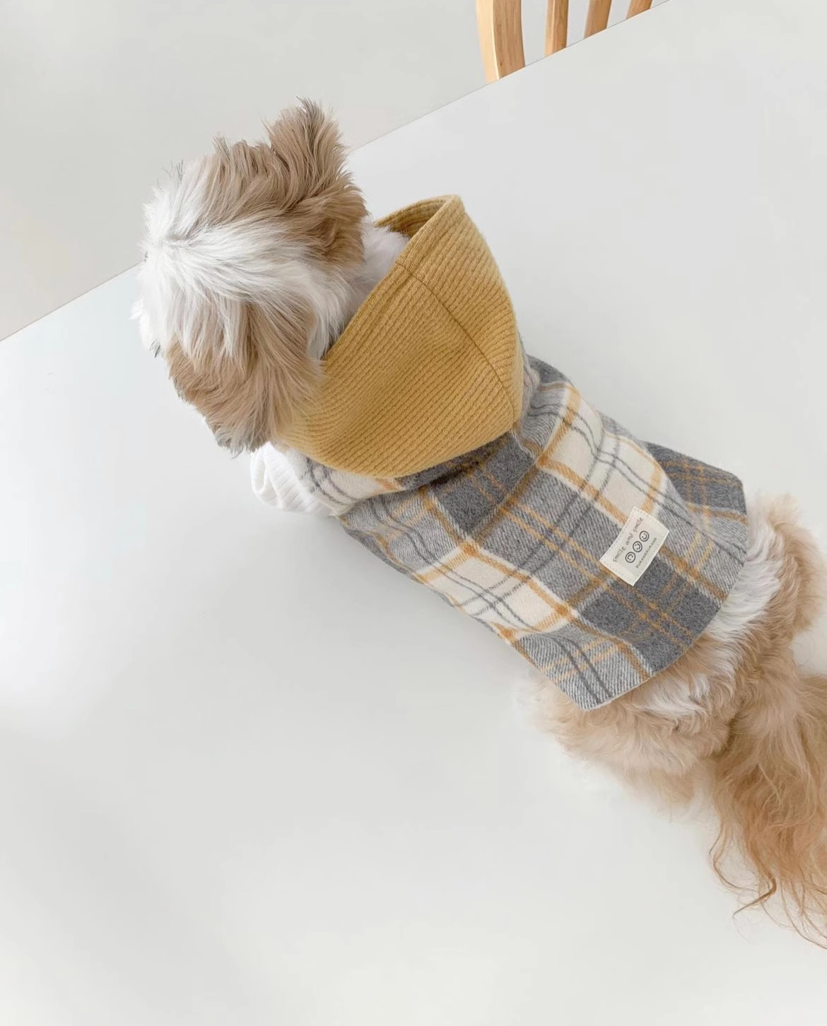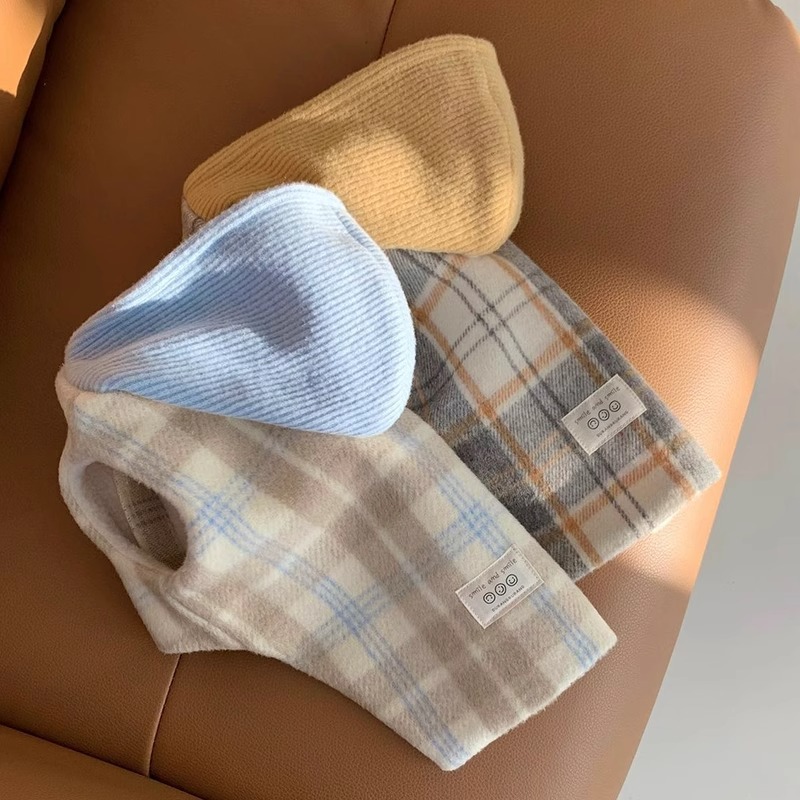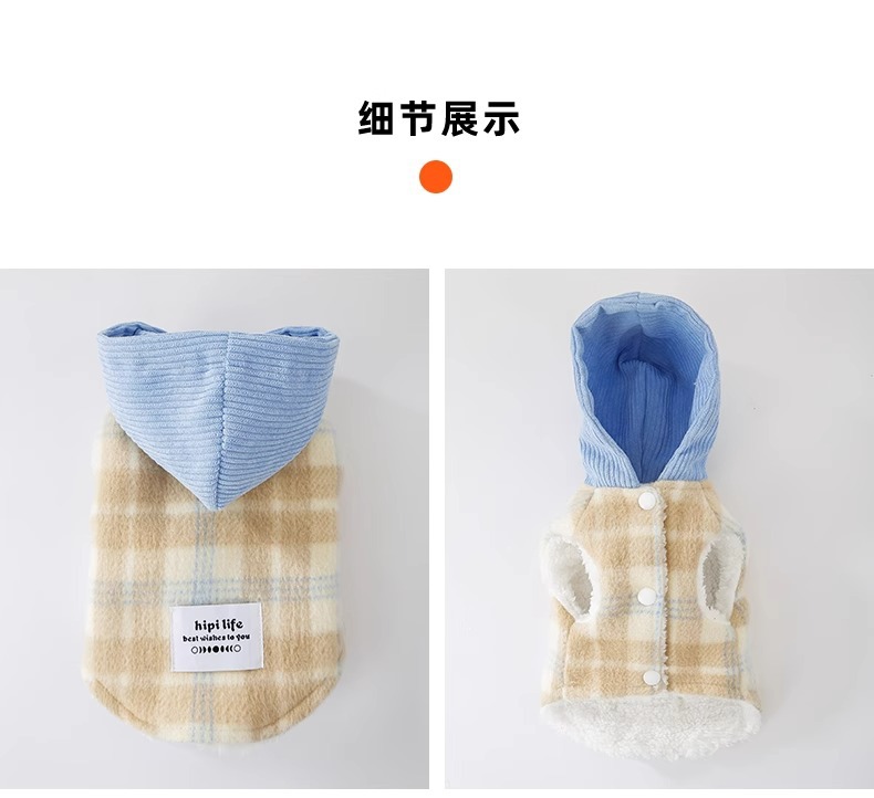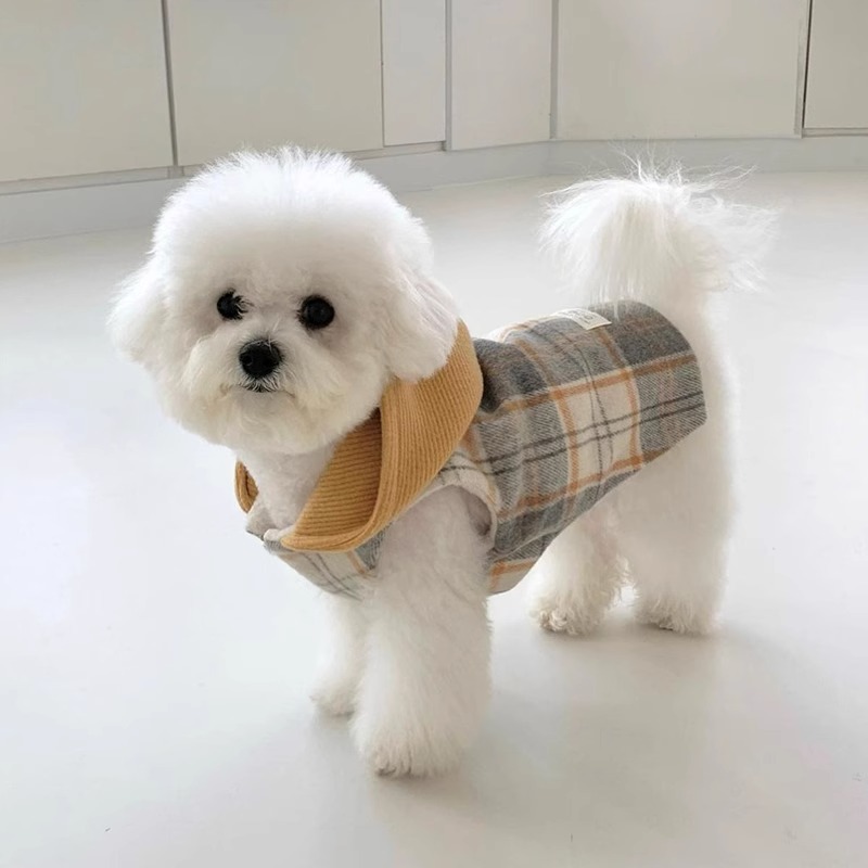 Versión coreana de otoño y invierno para perros gruesos y tablero de ajedrez de lana con capuzas tracción chaleco de algodón gato ropa de mascotas de invierno