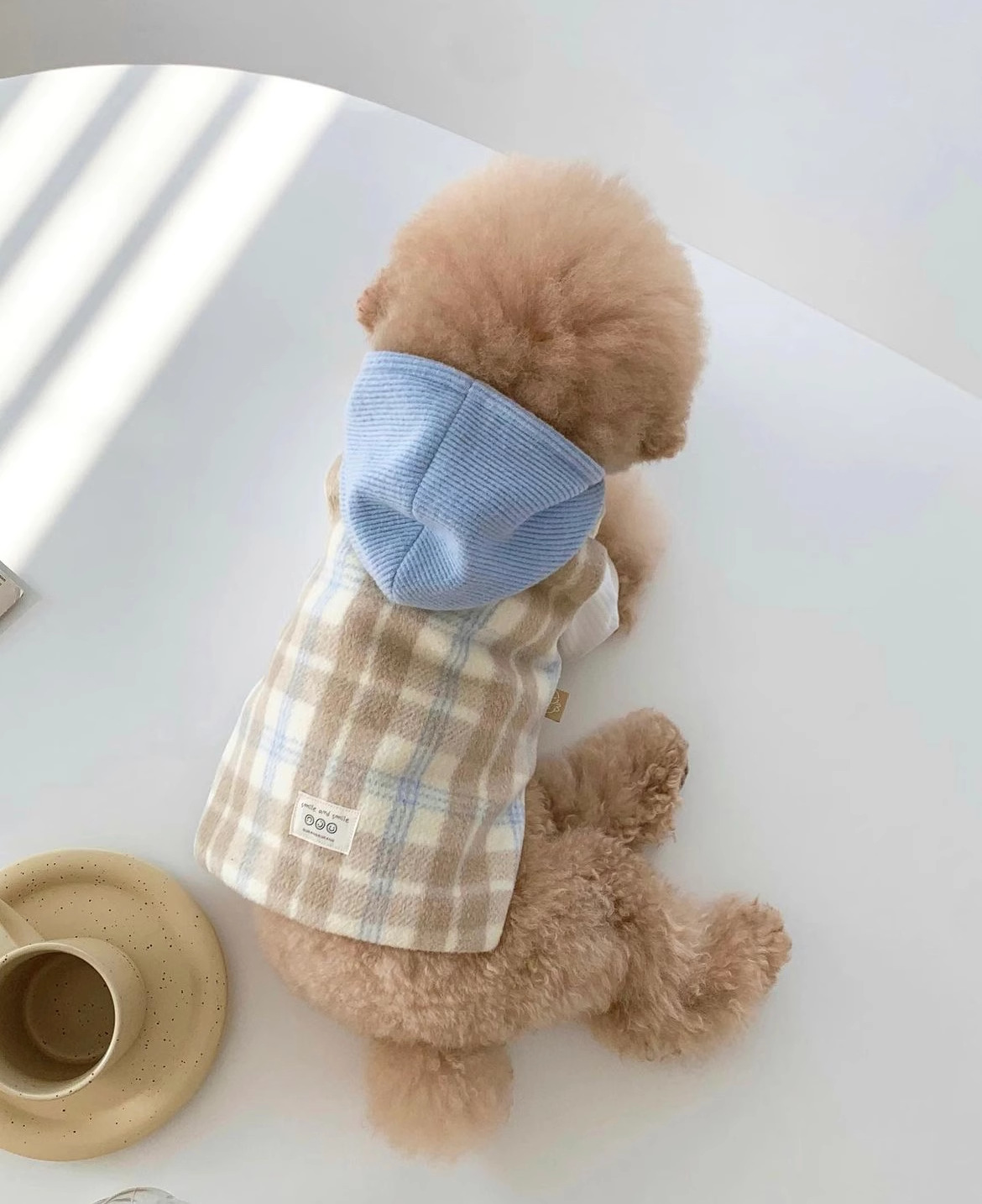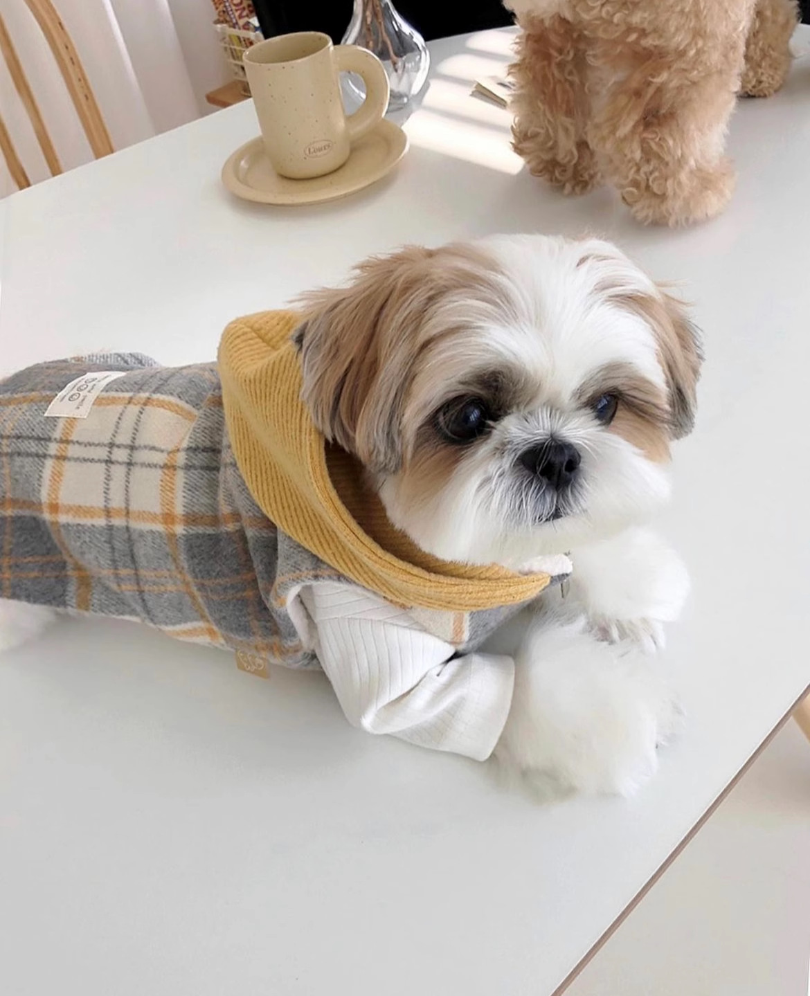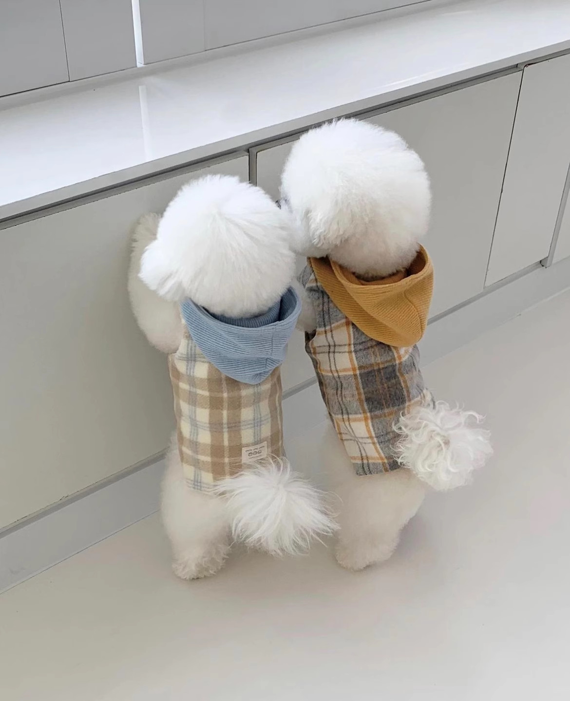Versión coreana de otoño y invierno para perros gruesos y tablero de ajedrez de lana con capuzas tracción chaleco de algodón gato ropa de mascotas de invierno