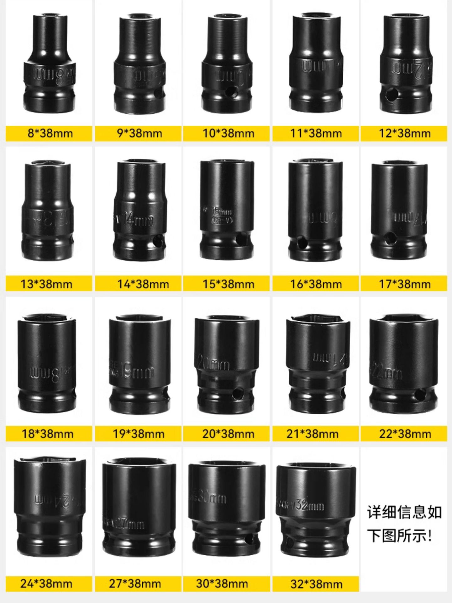 Llave eléctrica cabeza de manguito conjunto completo alargado hexagonal perforador de mano pistola de aire 8 - 34mm conjunto de herramientas de manguito de aire