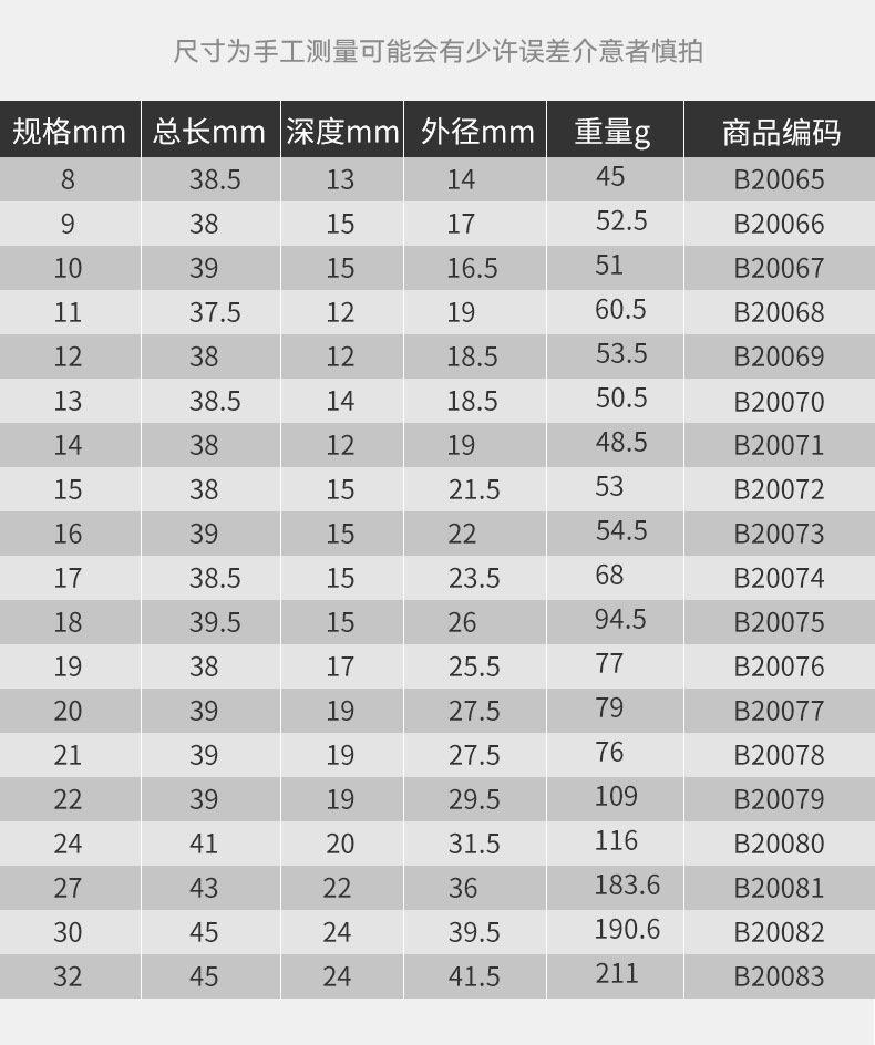 ![8 / 10 / 12 / 13 / 14 / 16 / 17 / 19 / 22 / 24 mm [juego de 10 piezas]](https://cbu01.alicdn.com/img/ibank/O1CN017C6wBK1eFgfakQQjo_!!2215531983842-0-cib.jpg)