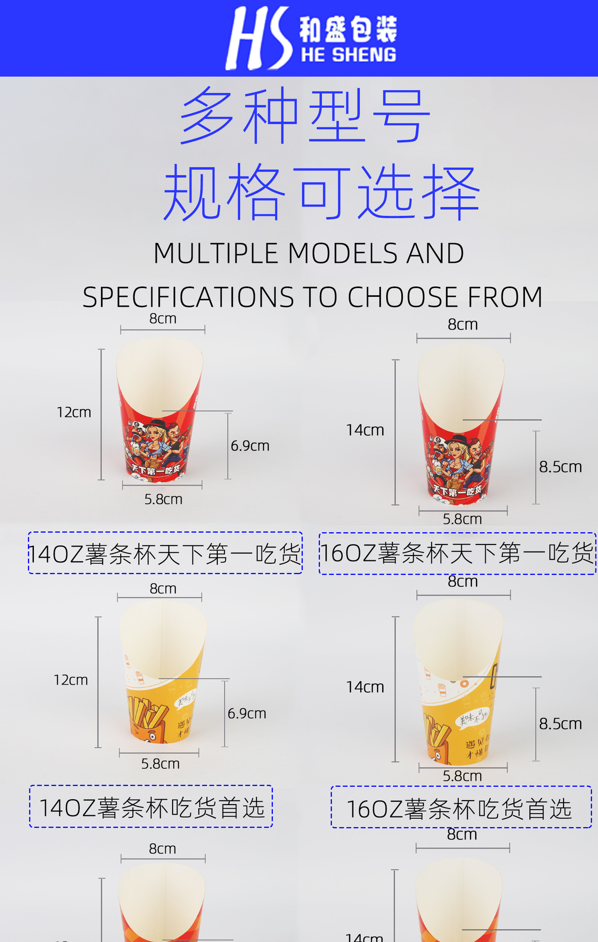 Taza de papel fritas desechables Taza taza de huevo boca oblicua taza de papel para imprimir 14oz helado taza de papel taza de cuerda