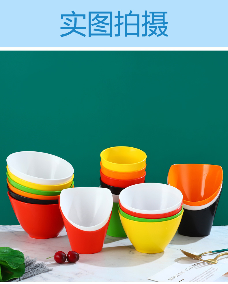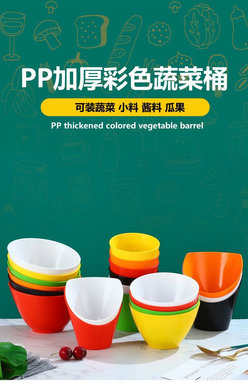 PP porcelana-como colorido oblicuo Tazón de fuente Cubo de lechuga Tazón verde vegetal cubo vegetal creativo restaurante comercial Ensalada de frutas Tazón