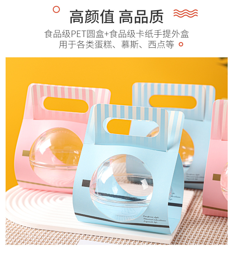 Caja de pastel de bola de mousse portátil Ensalada de frutas redonda transparente Caja de embalaje Ventana abierta Batido Embalaje de arroz Boqi Caja vacía