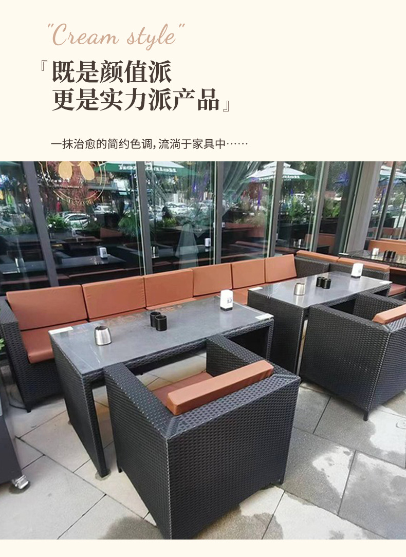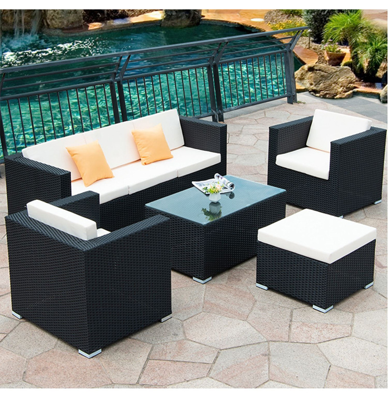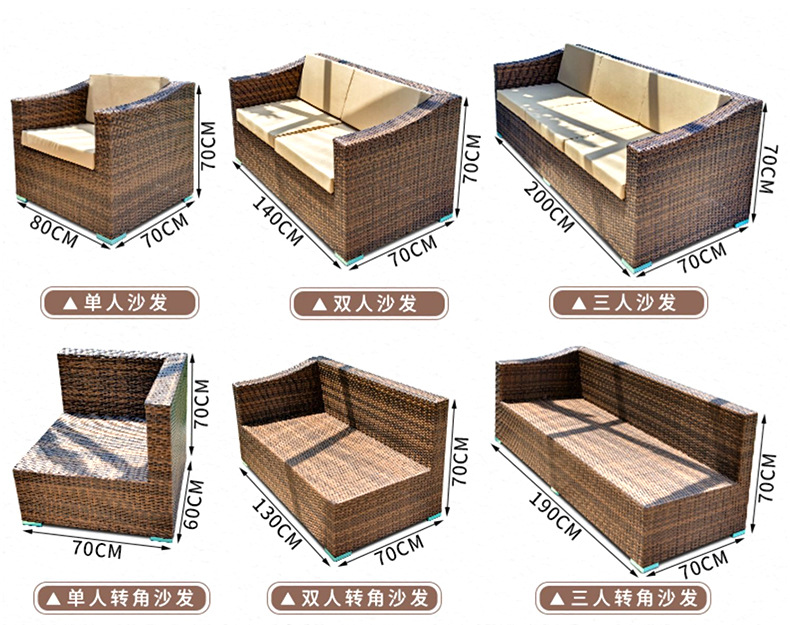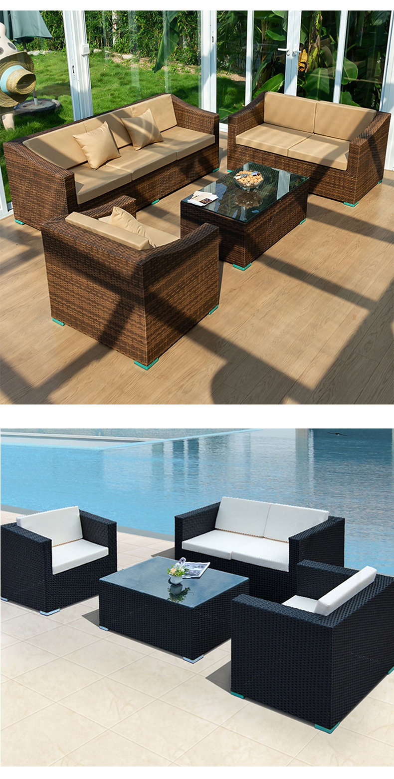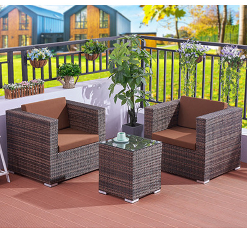 Sofá de ratán nórdico al aire libre B & B Hotel Restaurante Sofá de ratán Balcón Sofá Silla Juego de tres piezas al aire libre
