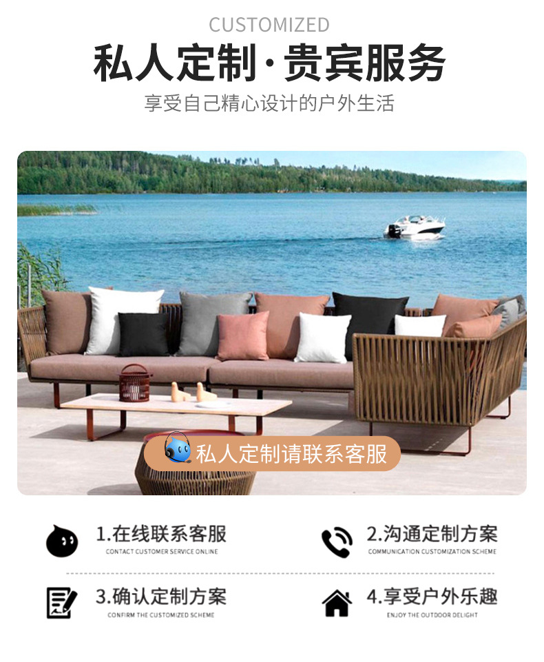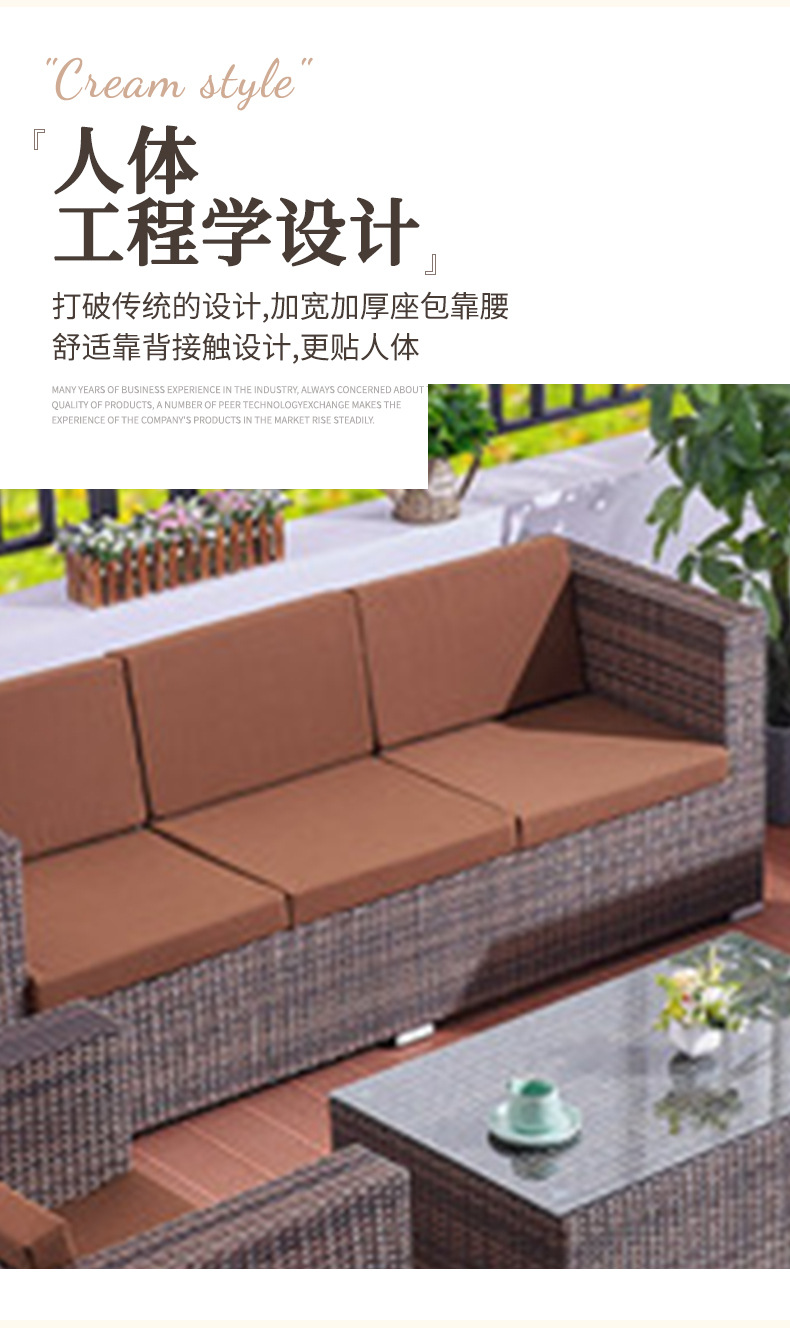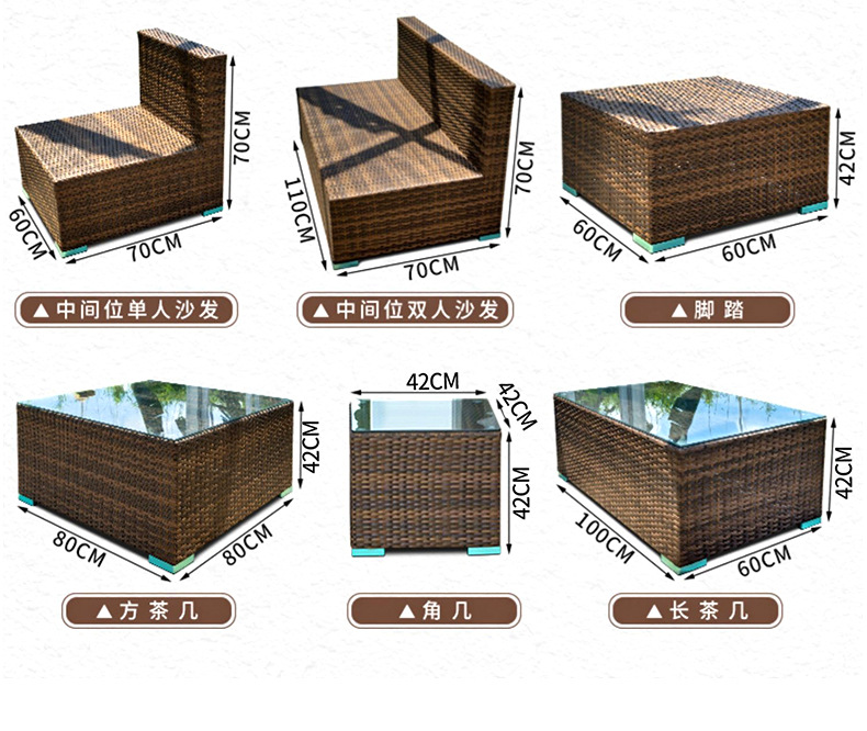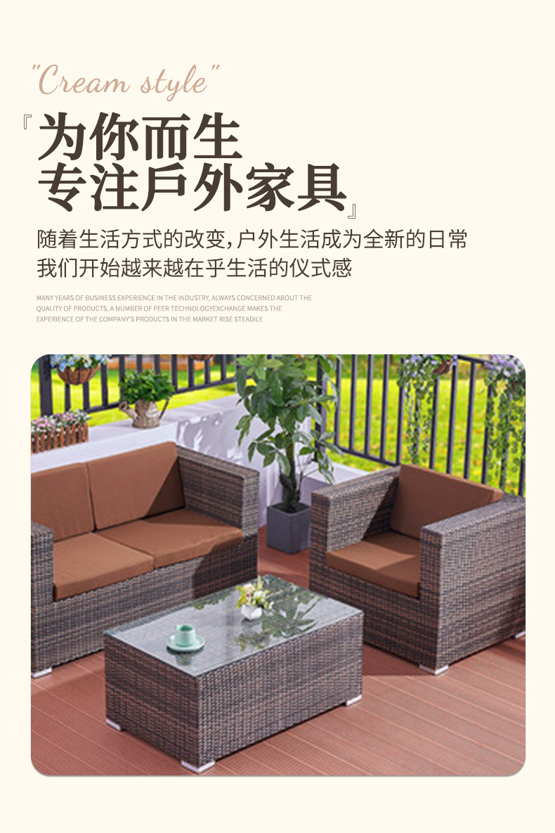 Sofá de ratán nórdico al aire libre B & B Hotel Restaurante Sofá de ratán Balcón Sofá Silla Juego de tres piezas al aire libre