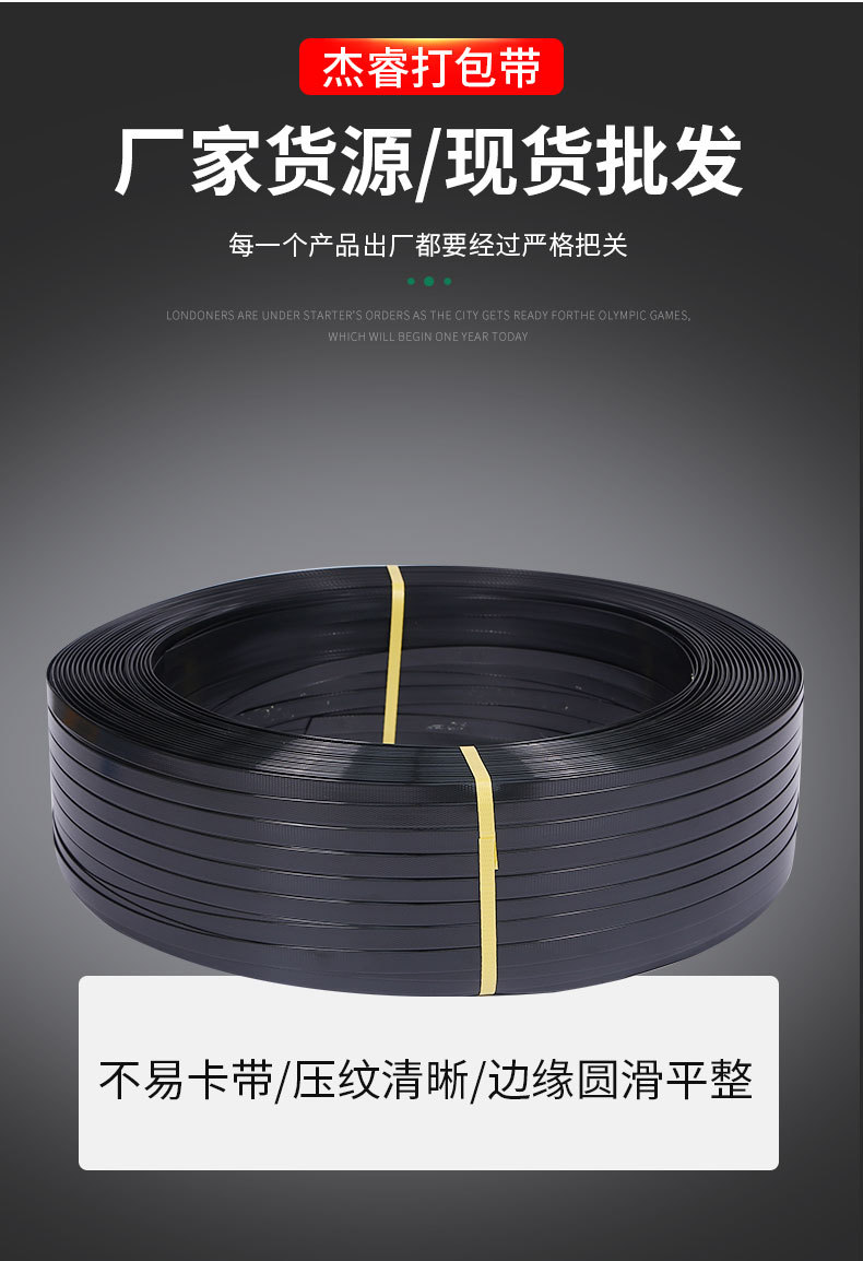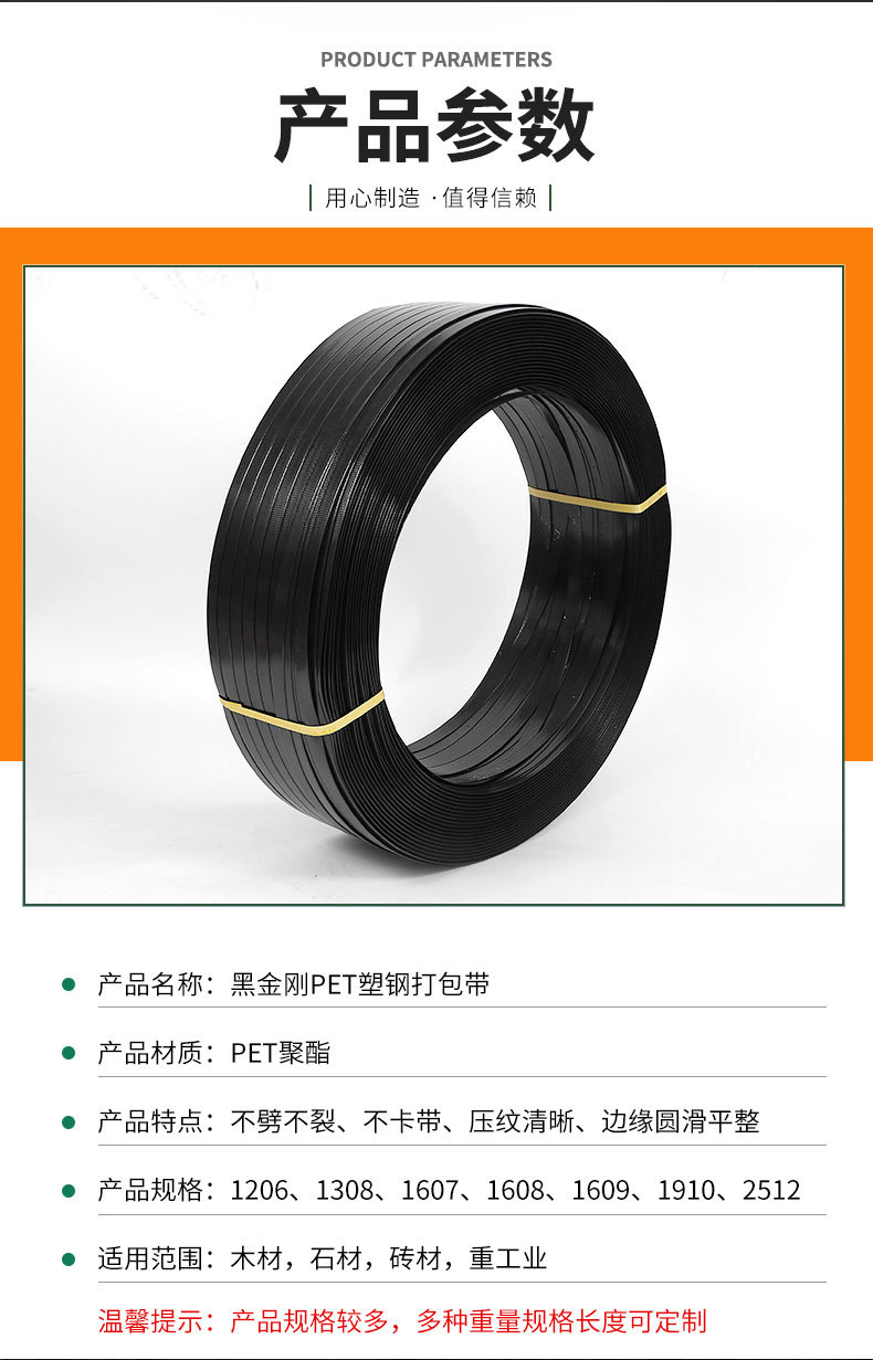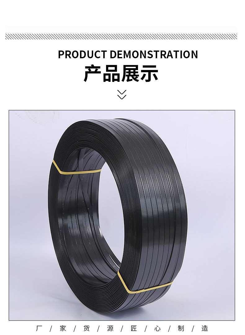 Spot al por mayor cinturón de embalaje de PET negro cinturón de embalaje industrial cinturón de acero de plástico para máquina fabricante de cinturón de embalaje manual