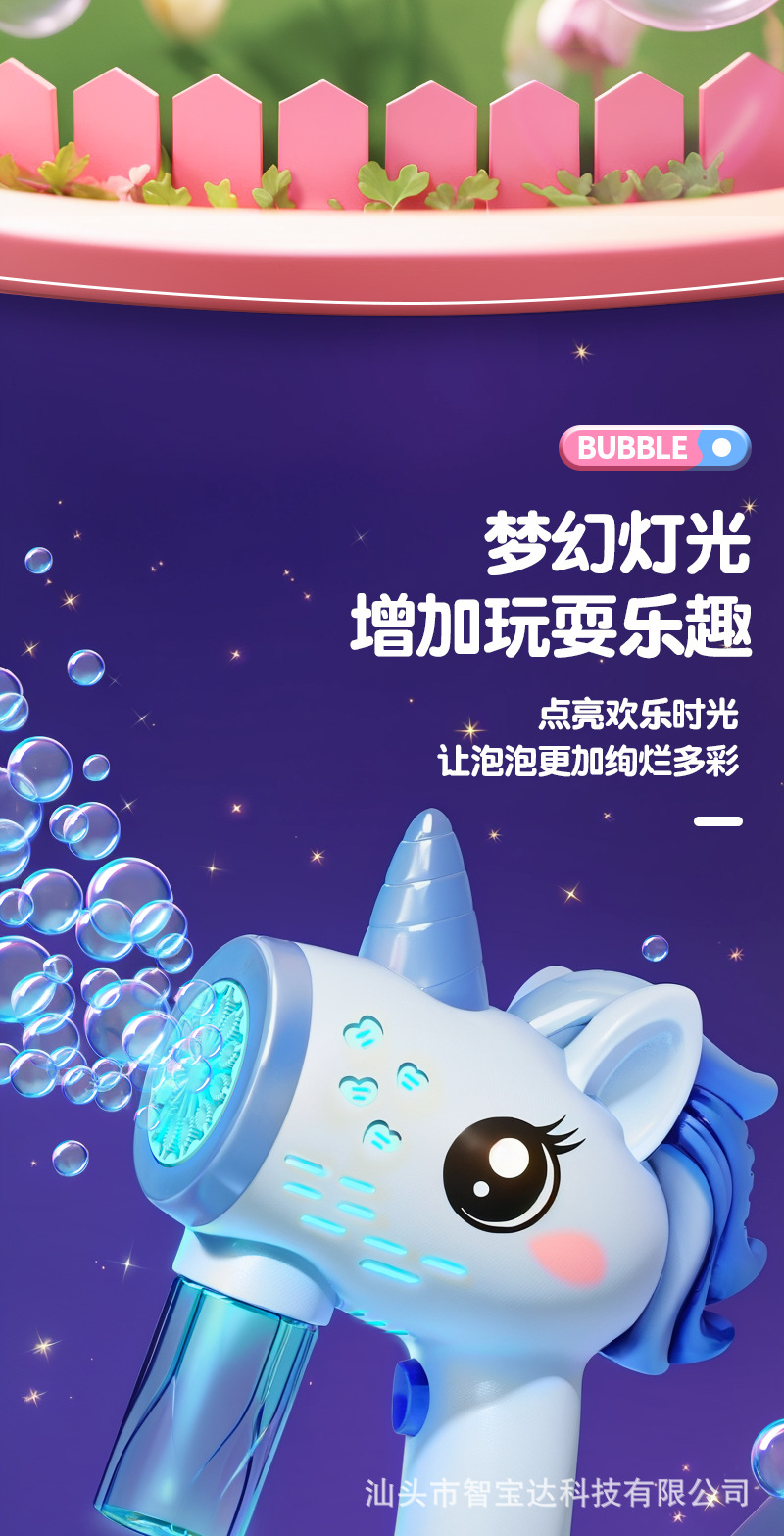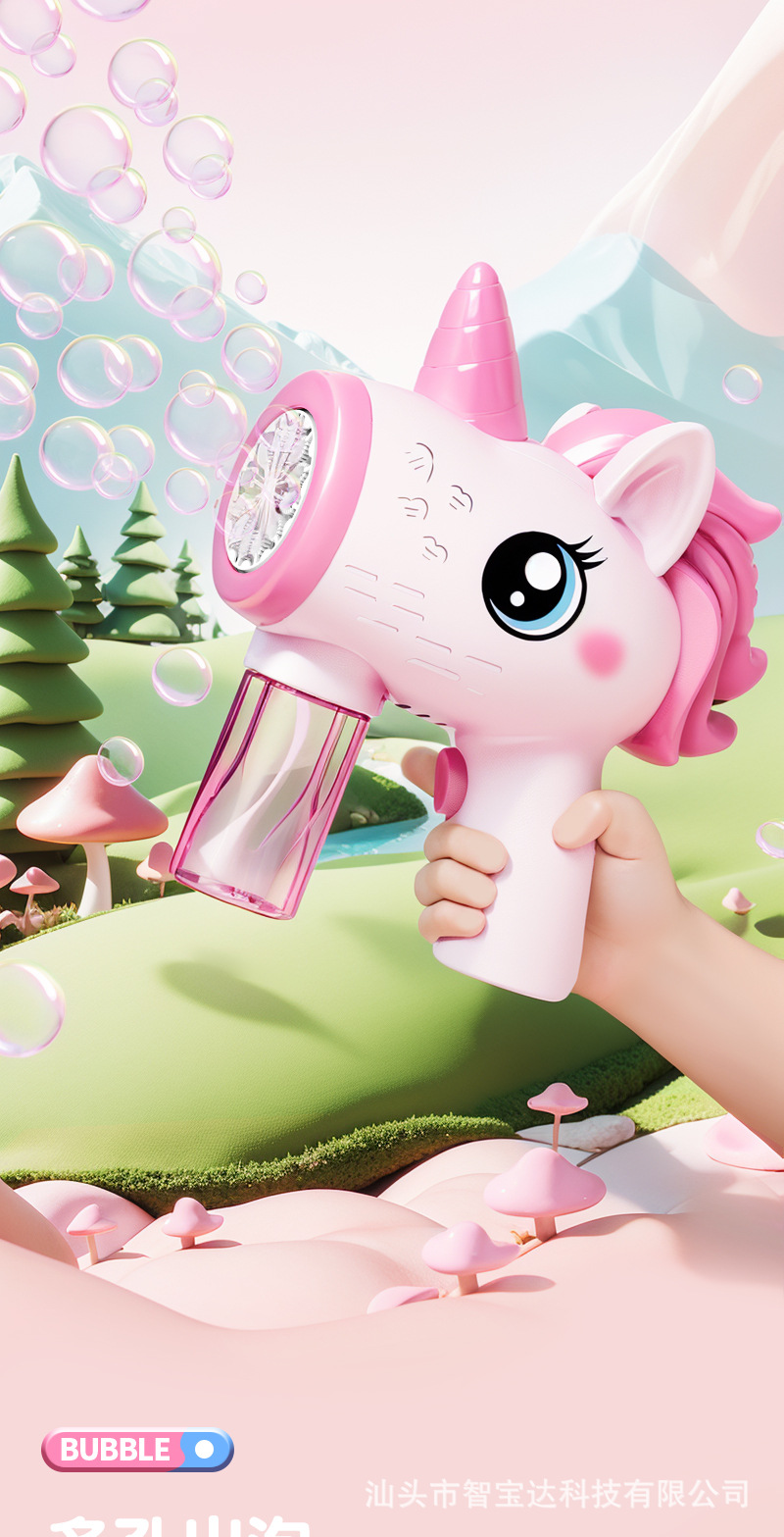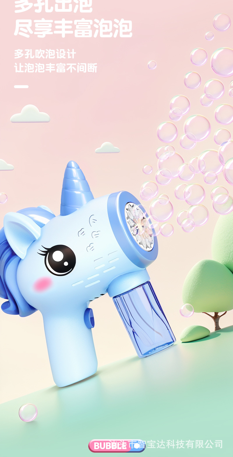 Máquina de burbujas de unicornio explosiva de Douyin, puesto de mercado nocturno eléctrico de mano automático, pistola de juguete de burbujas de luz al por mayor