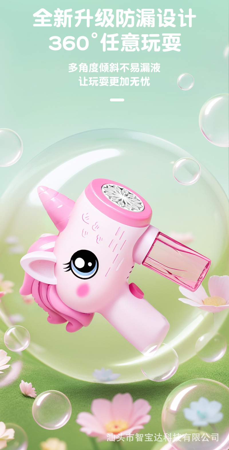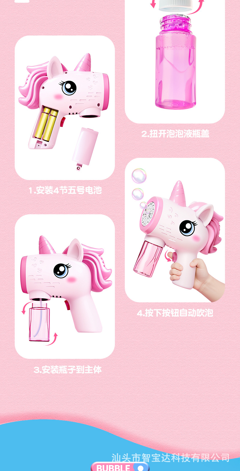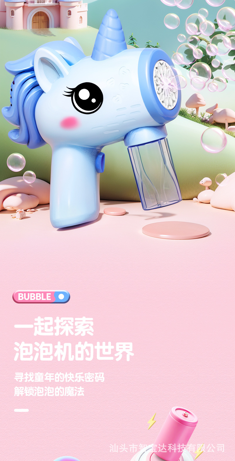 Máquina de burbujas de unicornio explosiva de Douyin, puesto de mercado nocturno eléctrico de mano automático, pistola de juguete de burbujas de luz al por mayor