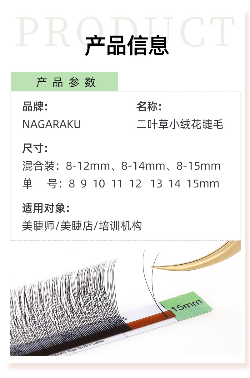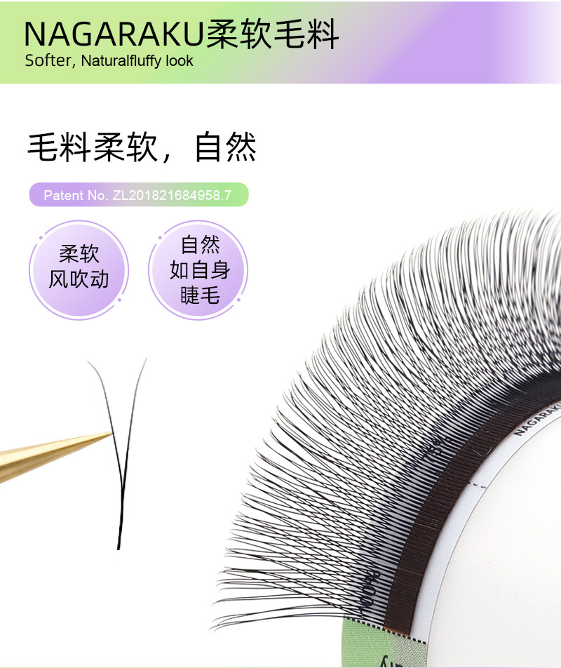 NAGARAKU V-V injerto de veludo pestañas ultra suave natural madre única densificación no dispersar la raíz de la hierba de hojas de dos hojas