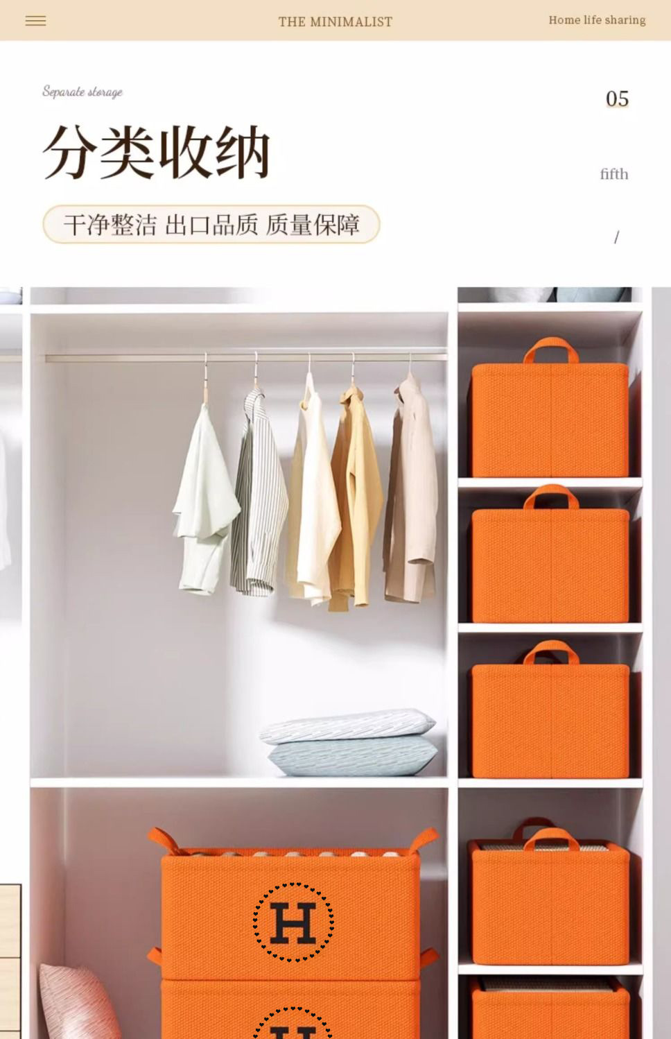 Hermashi Naranja cesta de almacenamiento de algodón y lino EVA engrosada plegable armario cesta de almacenamiento de ropa calcetines caja de almacenamiento de artículos diversos