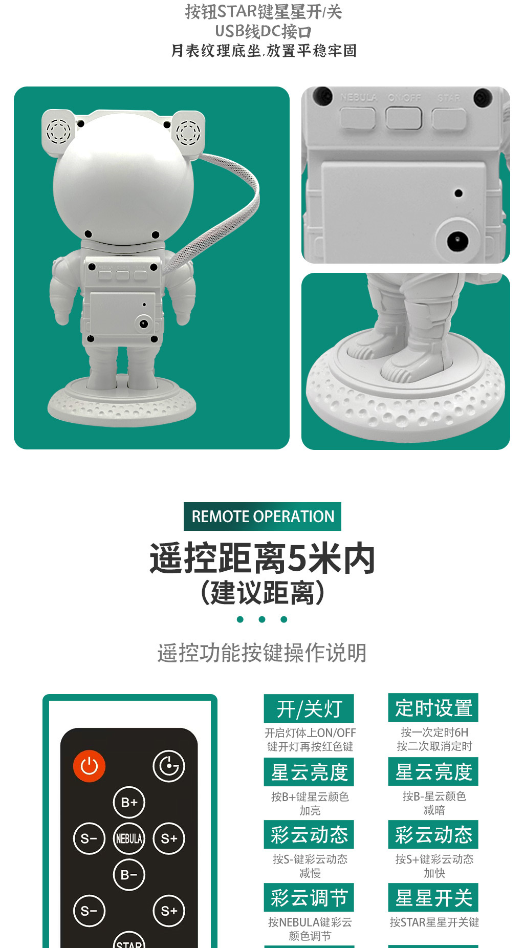 Lámpara de Nebulosa de Astronauta, Proyector de Sueño Infantil, Lámpara de Cielo Estrellado, Proyección de Oxígeno de Astronauta, Lámpara de Atmósfera de Cielo Estrellado de Planeta