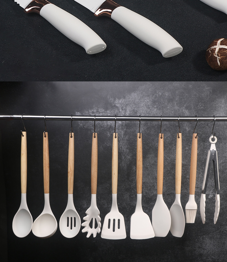 Juego de cuchillos Cuchillo de cocina Cuchillo de cocina Tijeras para el hogar Juego de utensilios de cocina de silicona Juego de 19 piezas de color Combinación de pala y cuchara
