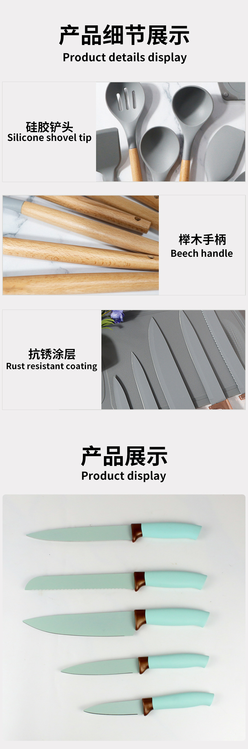 Spot gel de sílice utensilios de cocina resistentes a altas temperaturas sartén antiadherente cuchara de cocina cubo de almacenamiento conjunto de 19 piezas juego de herramientas de una pieza