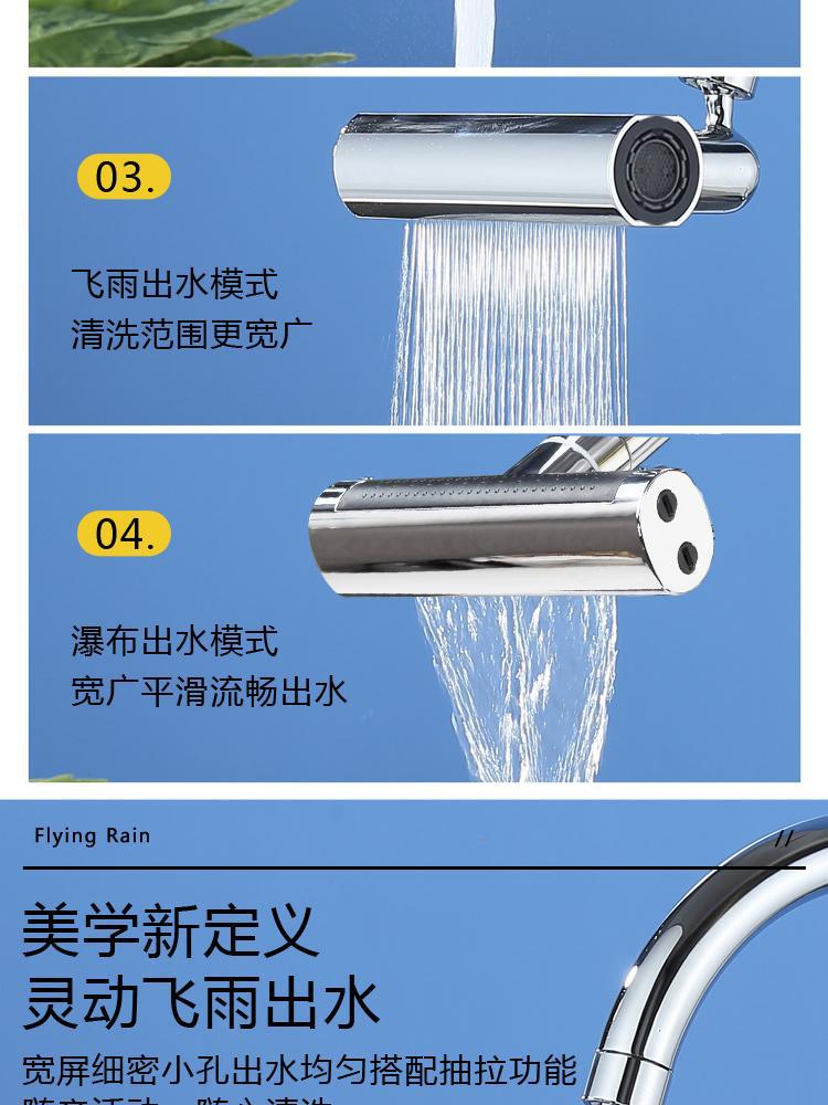 Actualización de cocina grifo de lluvia voladora salida de agua de tres engranajes universal multifunción boquilla giratoria a prueba de salpicaduras de espuma raspado artefacto