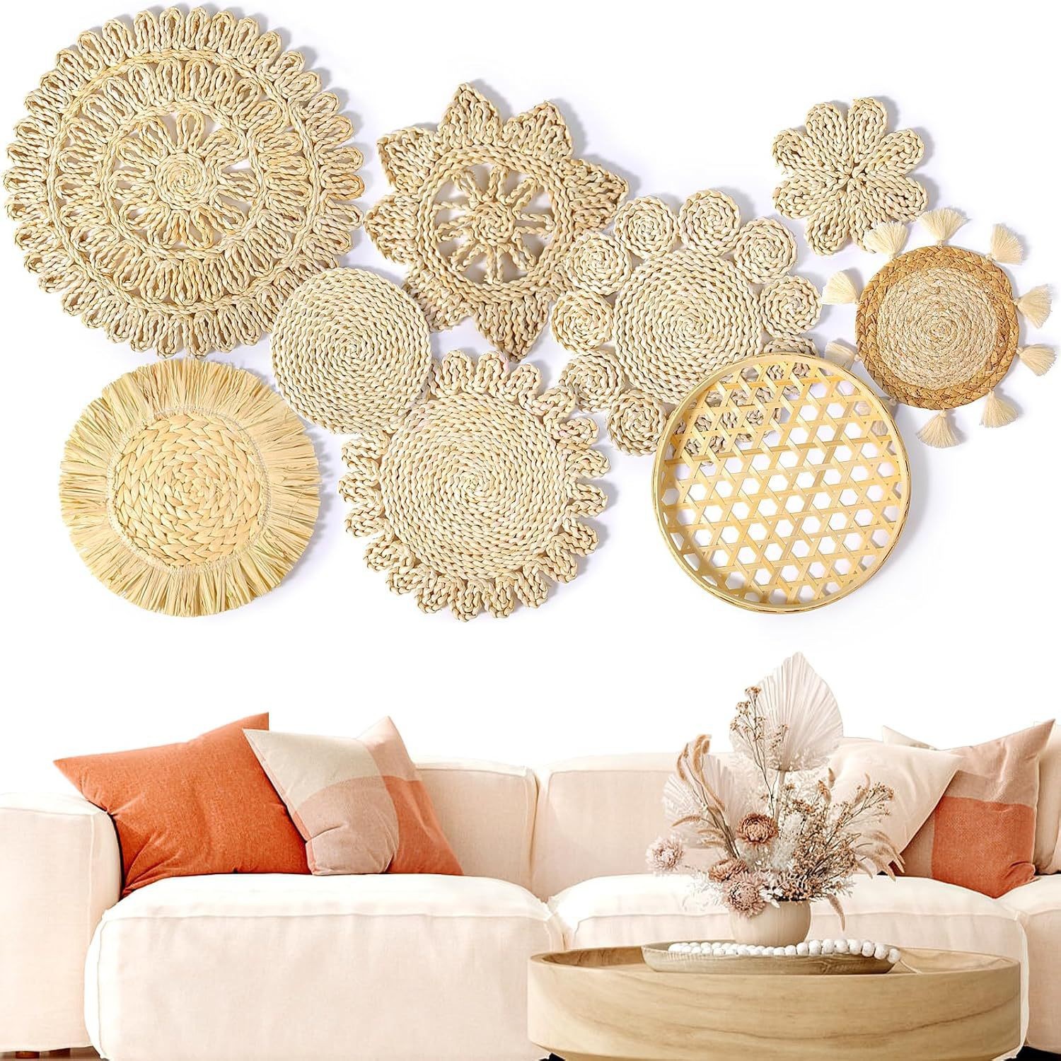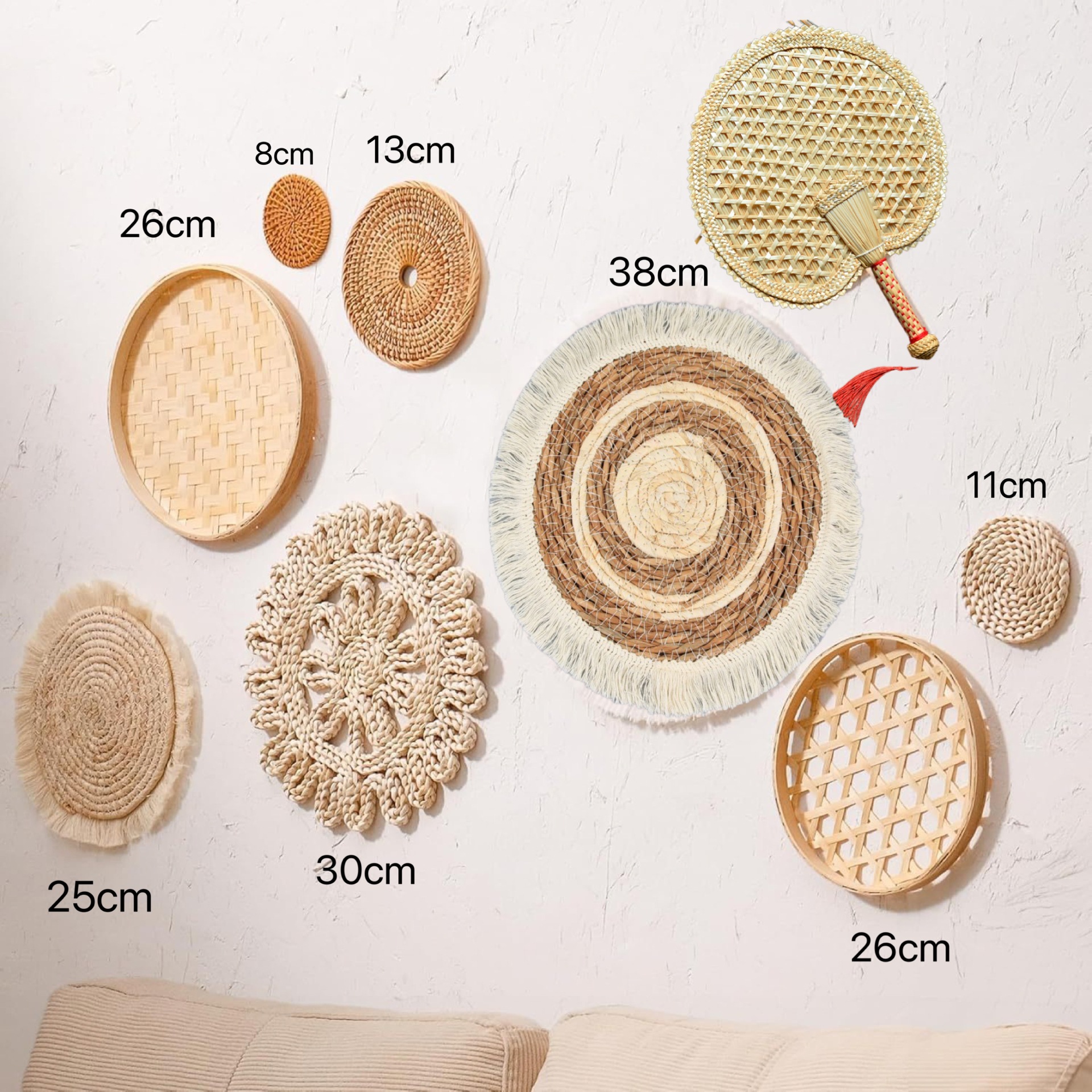 Amazon Homestay Decoración de pared Adornos Fábrica de tejido de paja Pared simple Pared redonda Hierba de ratán Sala de estar Colgante de decoración de pared
