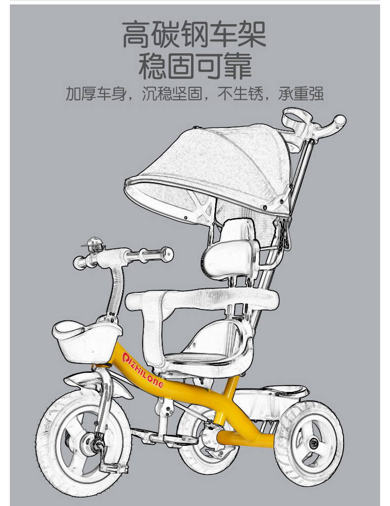 Asiento suave grande triciclo para niños bicicleta 1-3-5 años cochecito ligero bicicleta bebé bicicleta