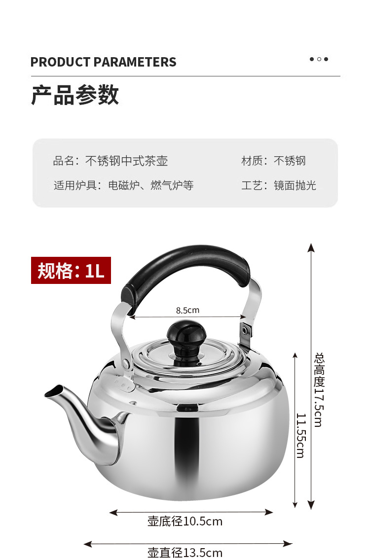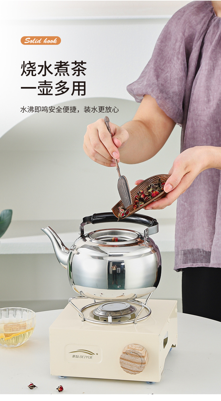 Hongmeishun tetera de acero inoxidable, filtro, té, cocina de inducción, agua hirviendo, tetera de restaurante, estufa de cerámica eléctrica al aire libre, olla de elevación