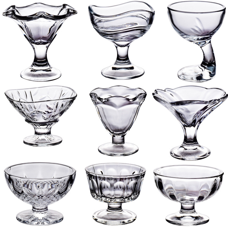 Tazón de yogur de vidrio Taza de postre de frutas Taza de helado Tazón de polvo de hielo Taza de desayuno creativa Taza de batido Taza de helado de bebida fría