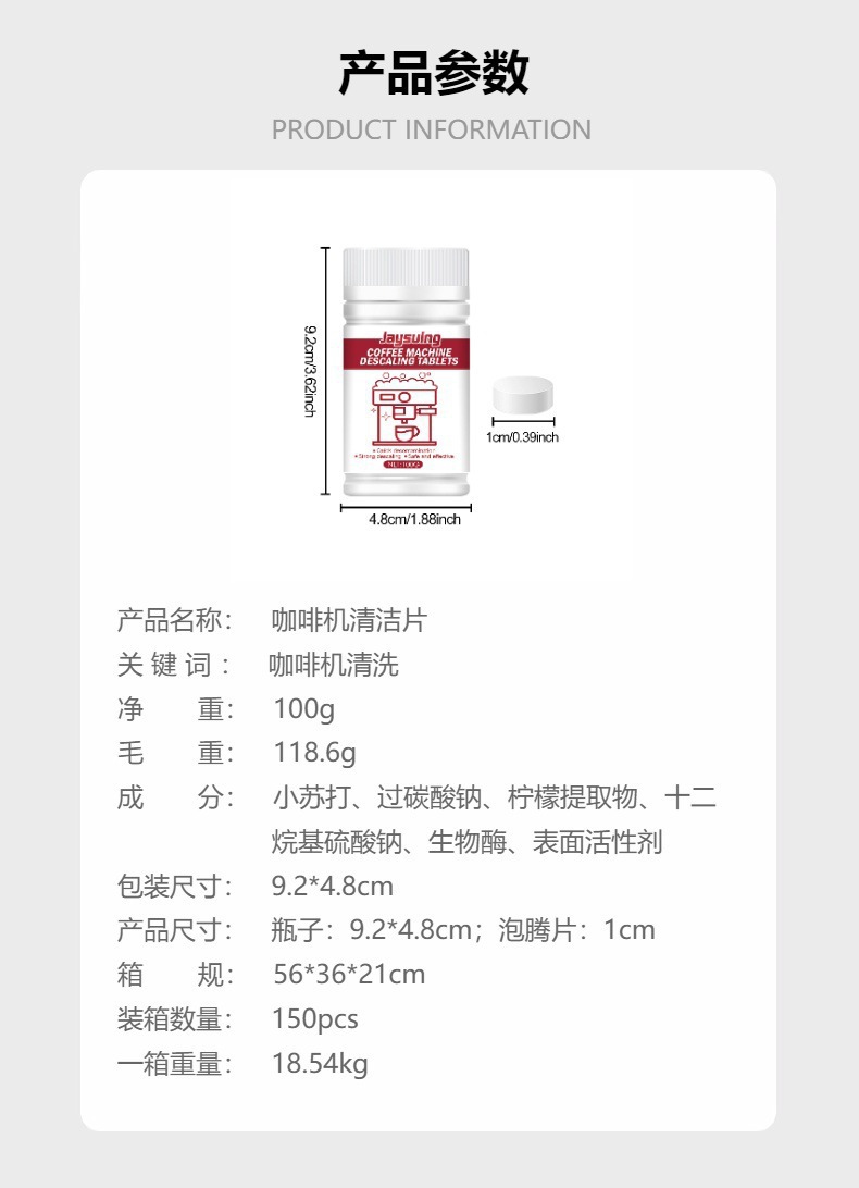 Tabletas de limpieza de la máquina de café Jaysuing Tabletas de limpieza de la máquina de café Manchas de mantenimiento de suciedad Filtro de limpieza Tabletas efervescentes