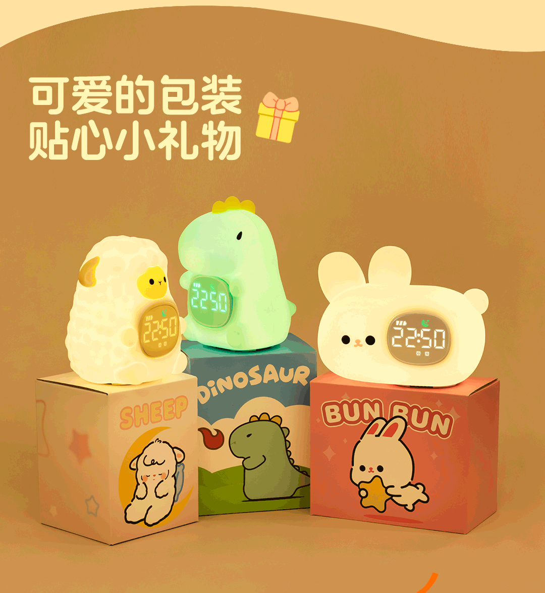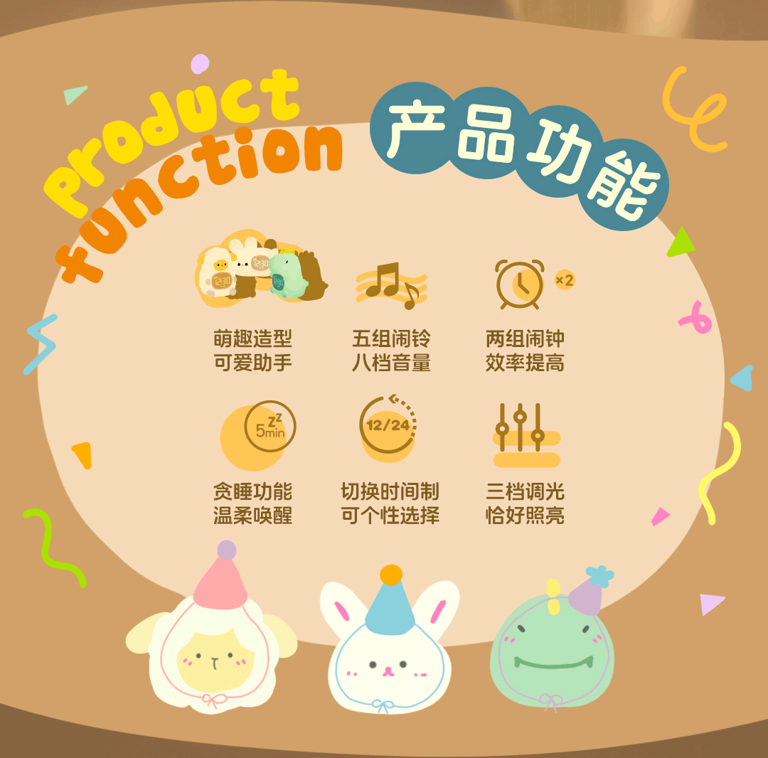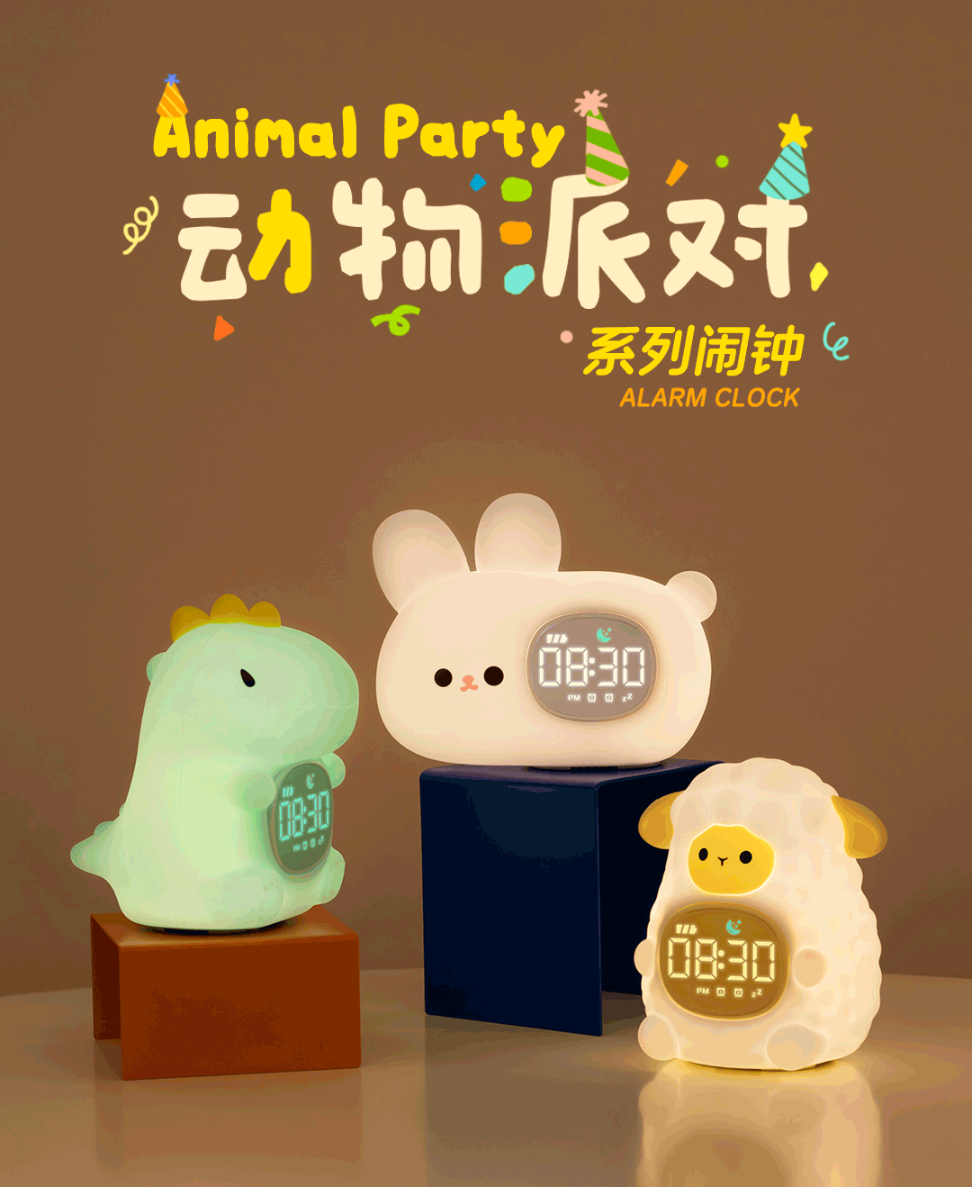 Animal Party Dinosaur Oveja Conejo Reloj electrónico para niños Multifuncional Estudiante Sleep Inteligente Despierta junto a la cama Alarma