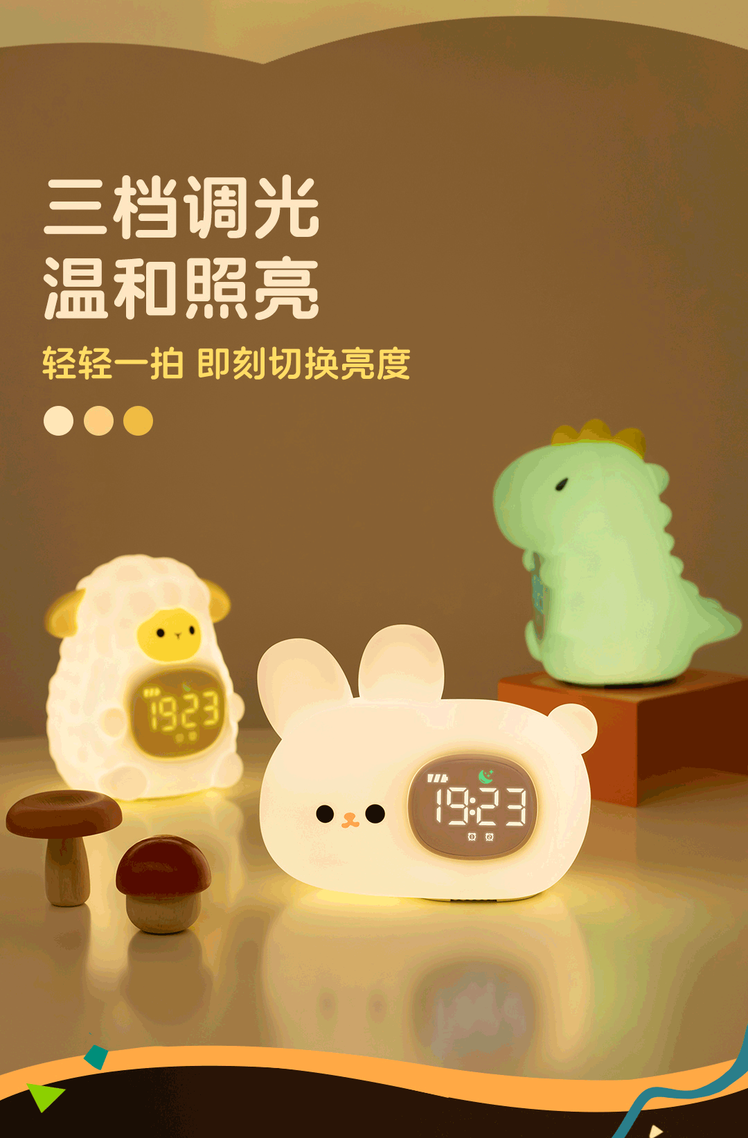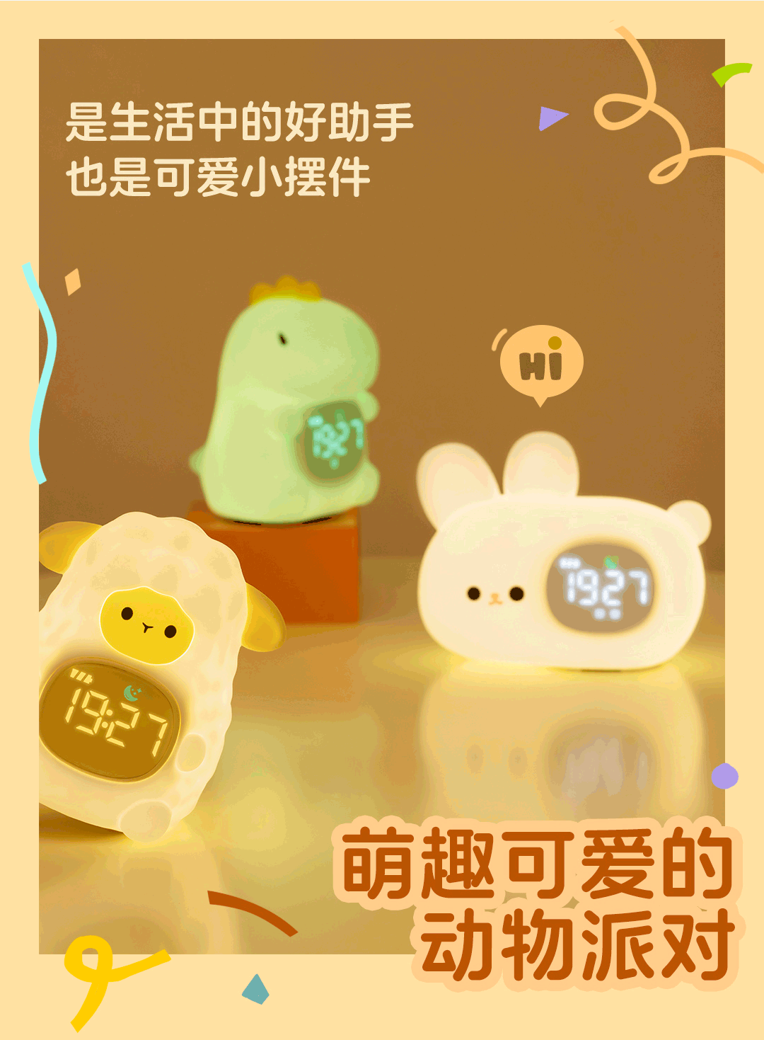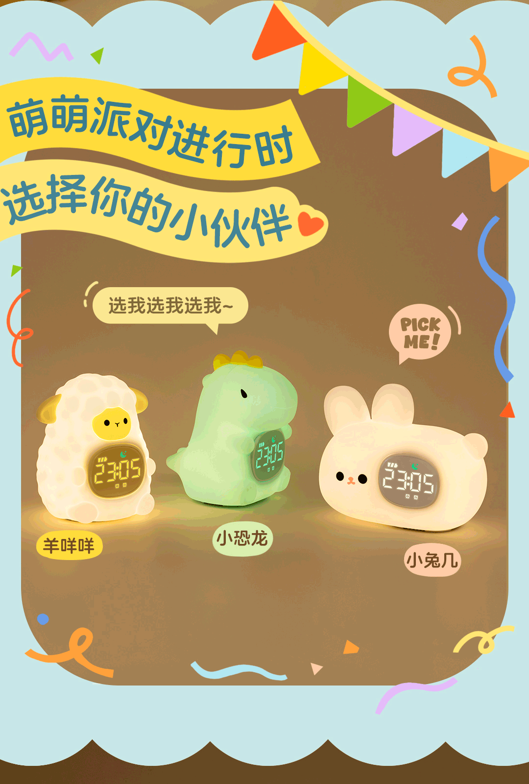 Animal Party Dinosaur Oveja Conejo Reloj electrónico para niños Multifuncional Estudiante Sleep Inteligente Despierta junto a la cama Alarma