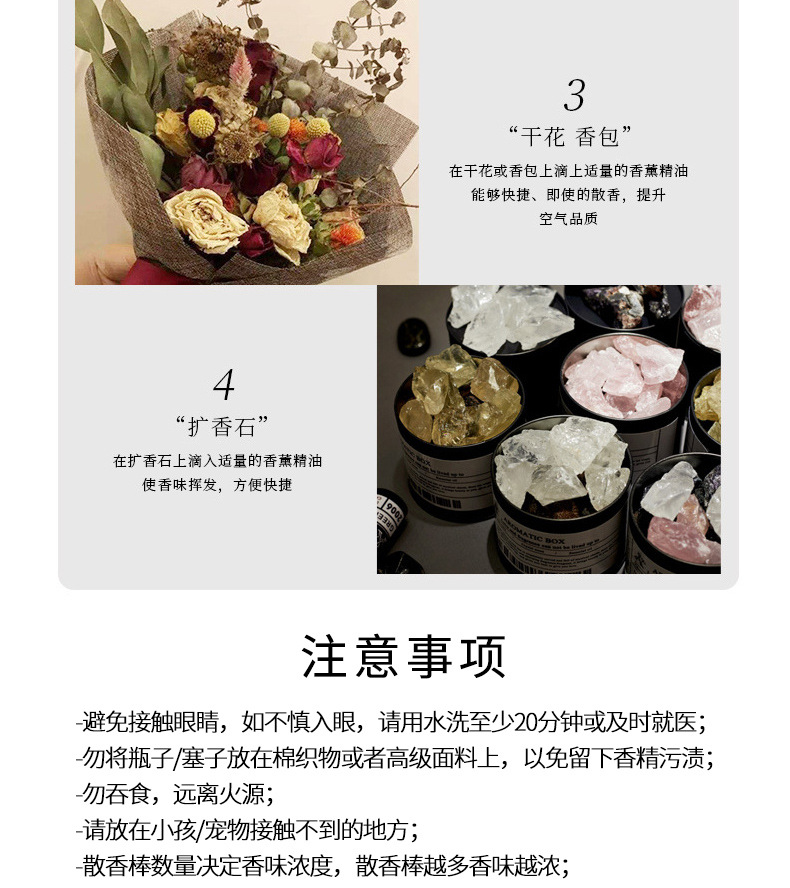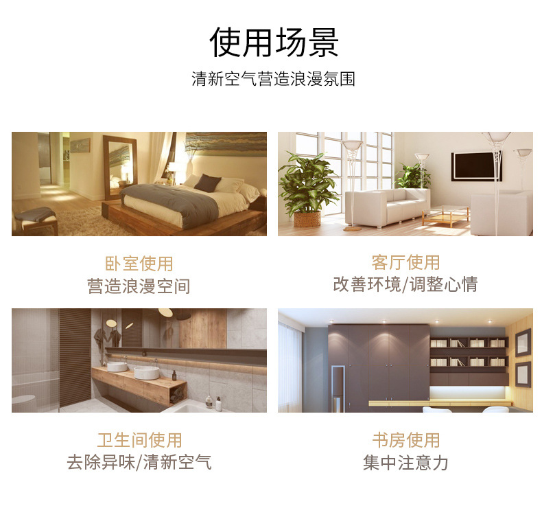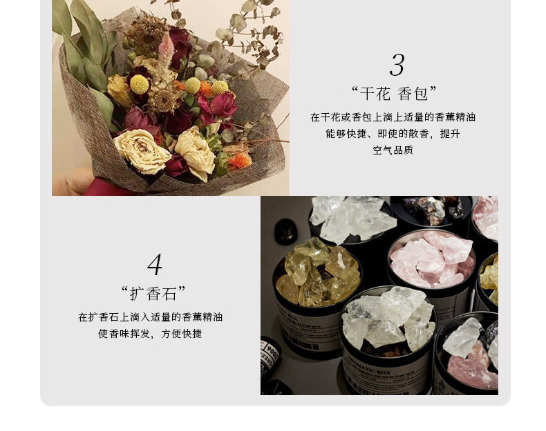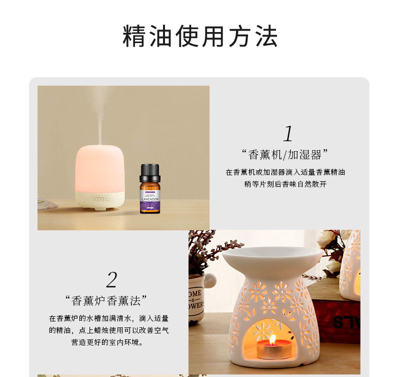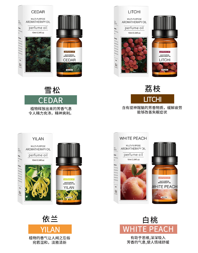 Los aceites esenciales de aromaterapia que son solubles en agua son exclusivos para uso doméstico en humidificadores interiores y son adecuados para la aromaterapia en automóviles. Son seguros y no irritantes.