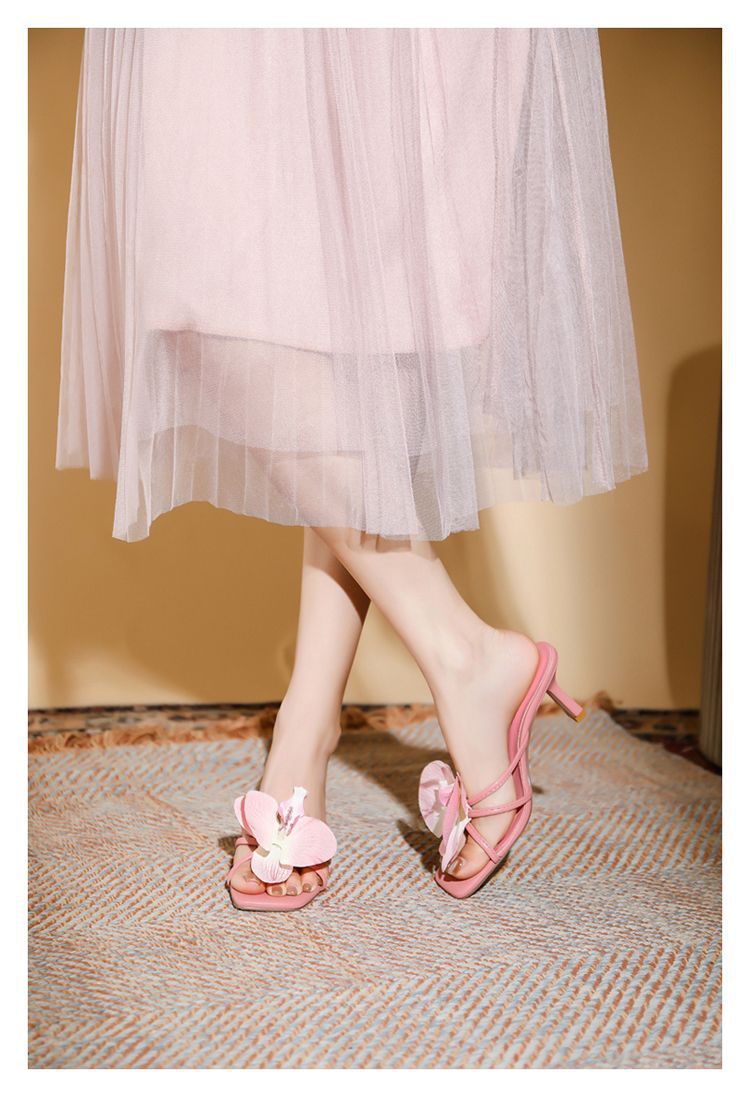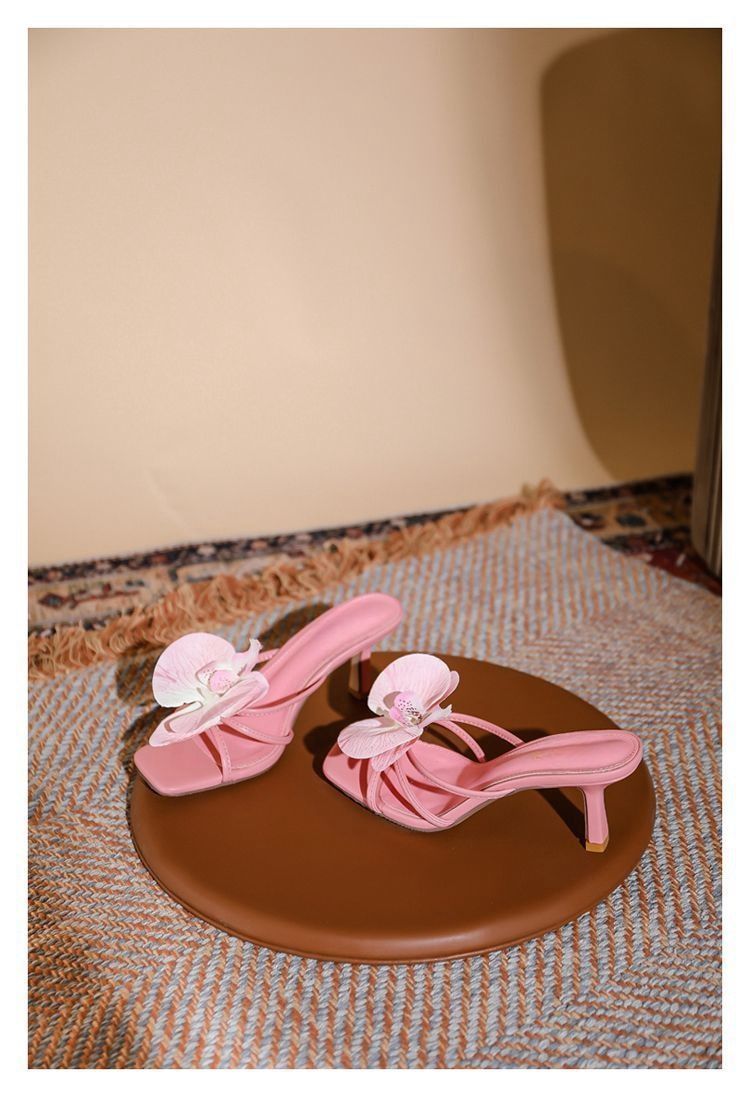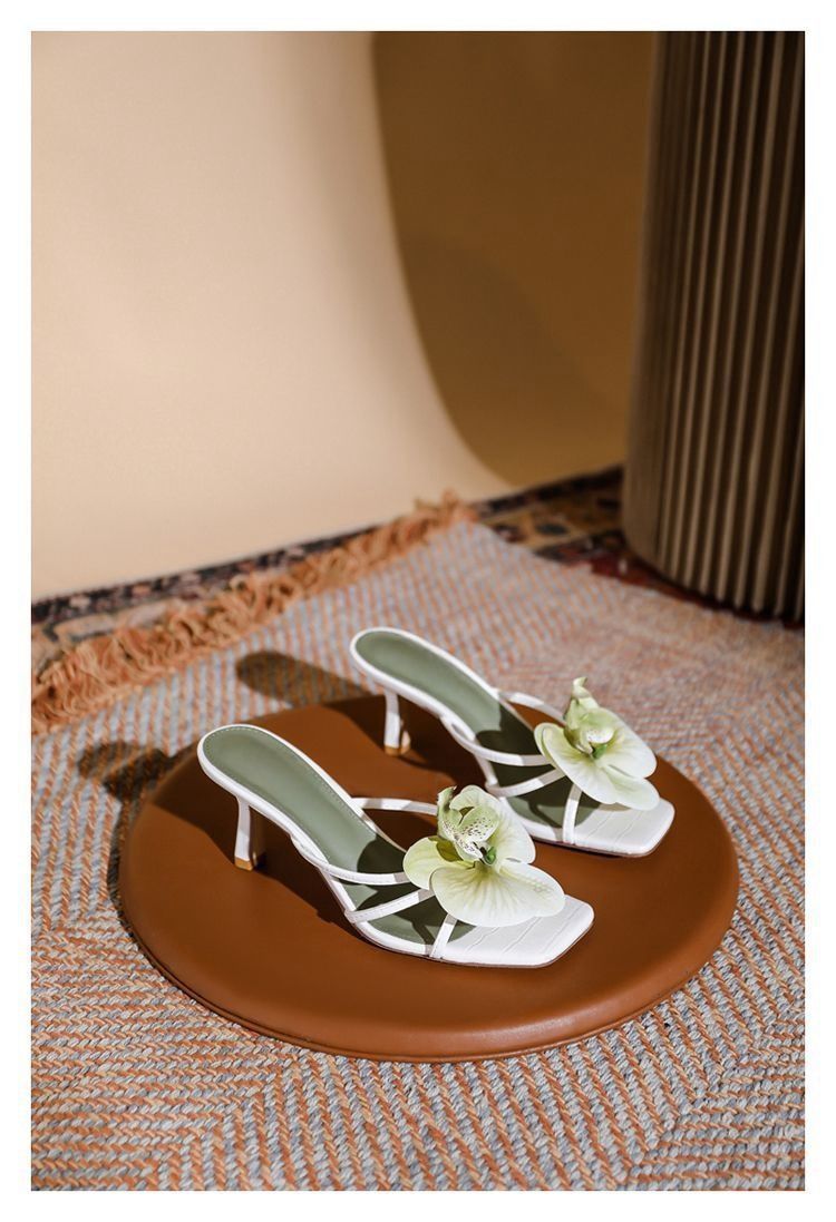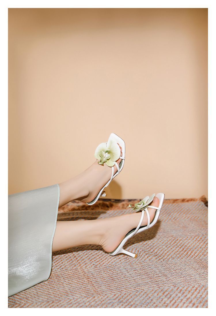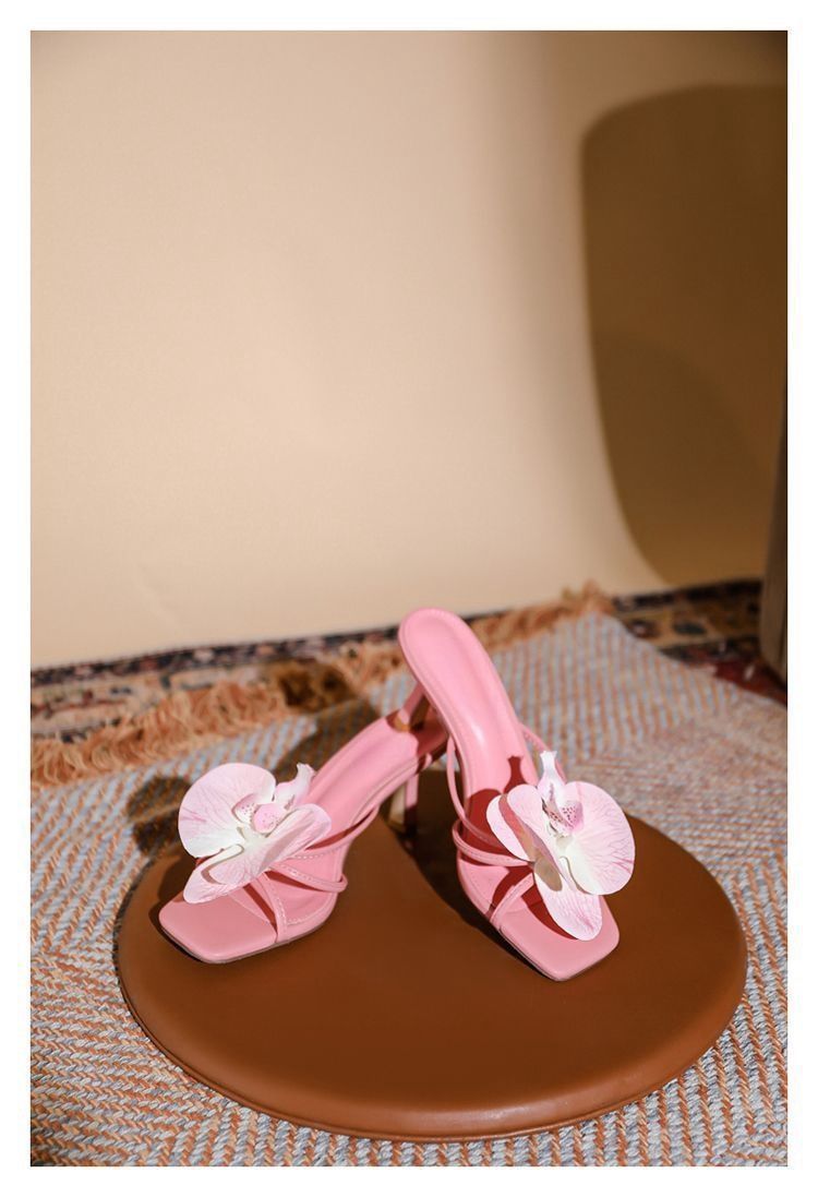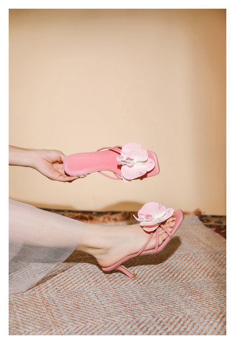 Sandalias de tacón alto con diseño floral, estilo europeo y americano, novedad 2025, para mujer, ideales para la playa y actividades al aire libre en verano.