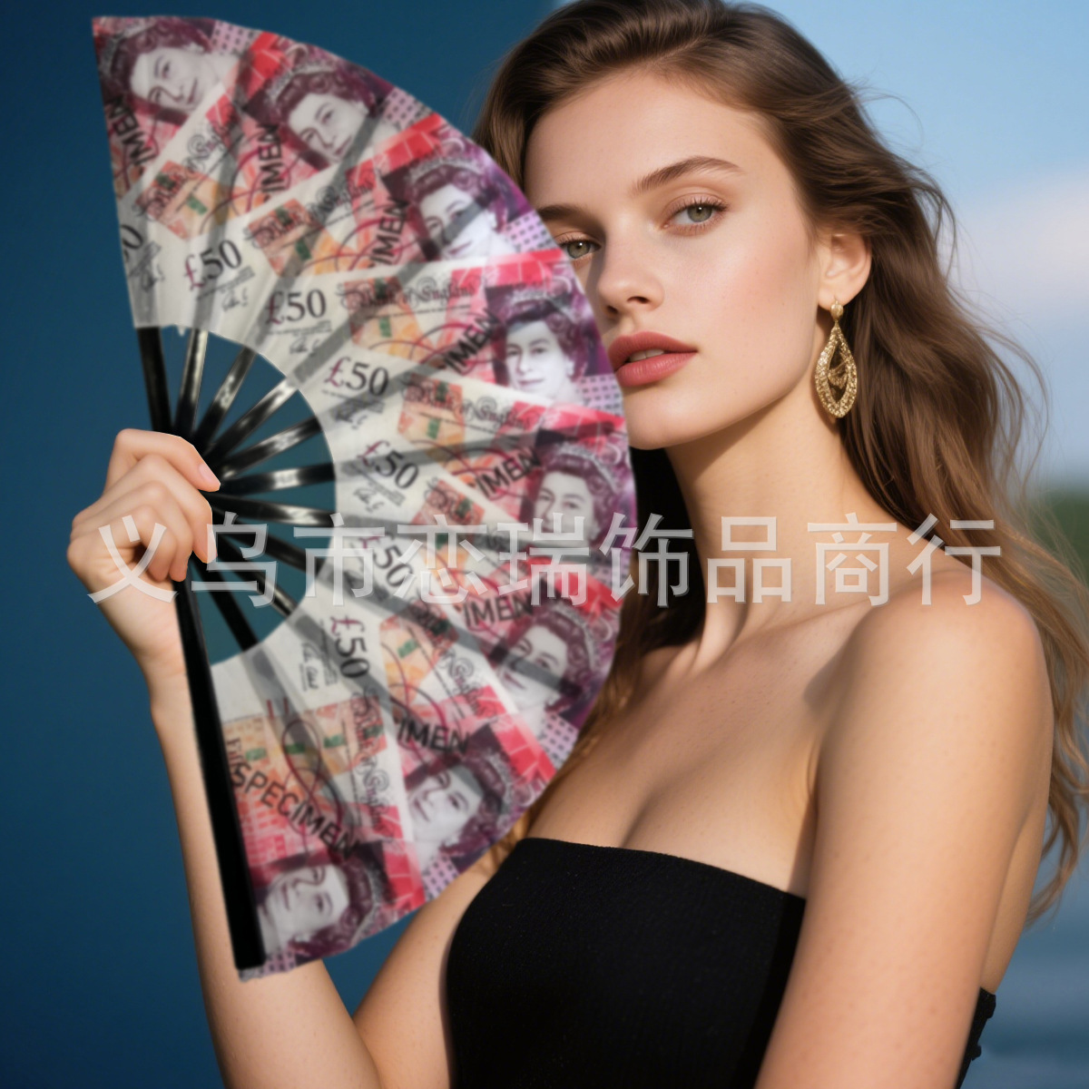 10 pulgadas 33cm dólar estadounidense euro libra ventilador impreso ventilador fluorescente plástico plegable hueso del ventilador poliéster accesorios de abanico