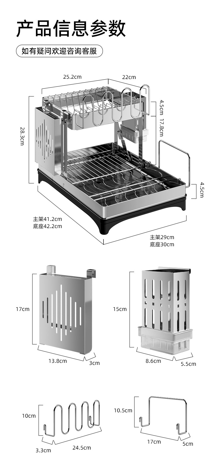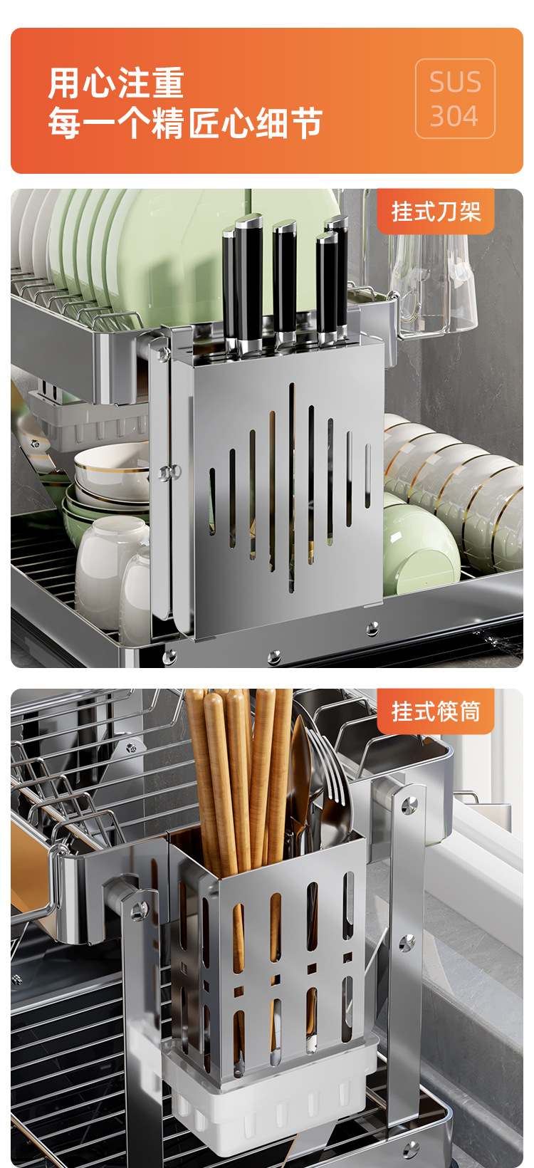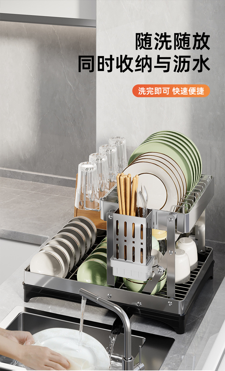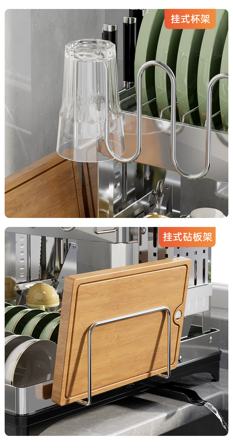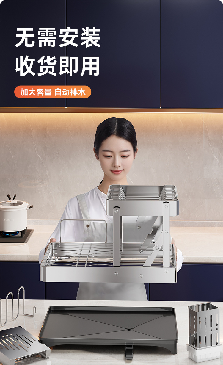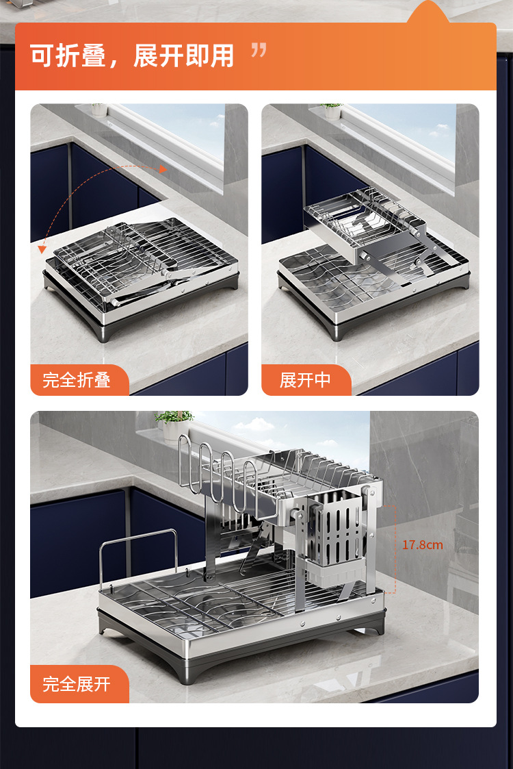 Estante de cocina 304 almacenamiento en el hogar de acero inoxidable, estante de drenaje de platos multifuncional, suministros de cocina plegables