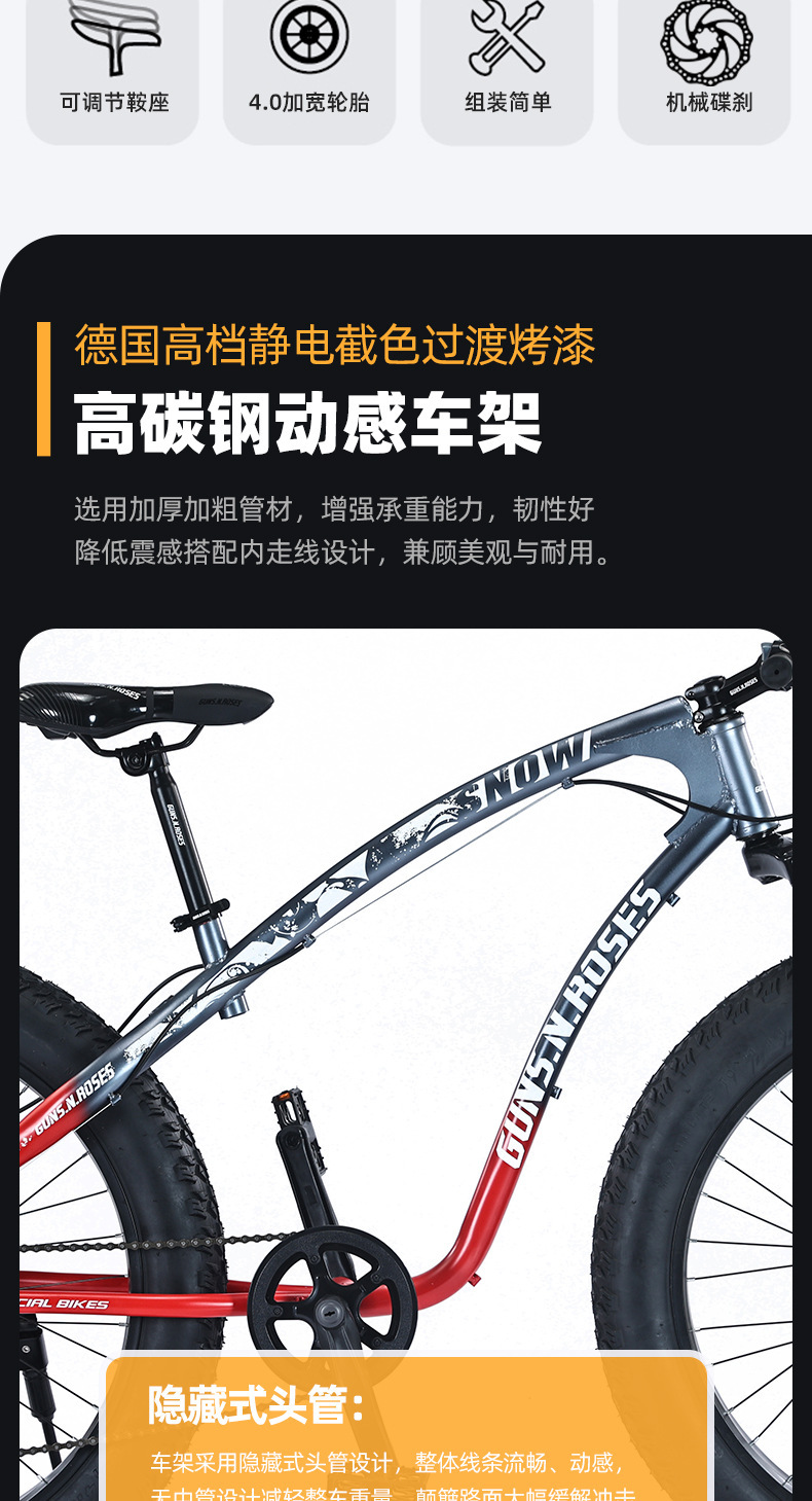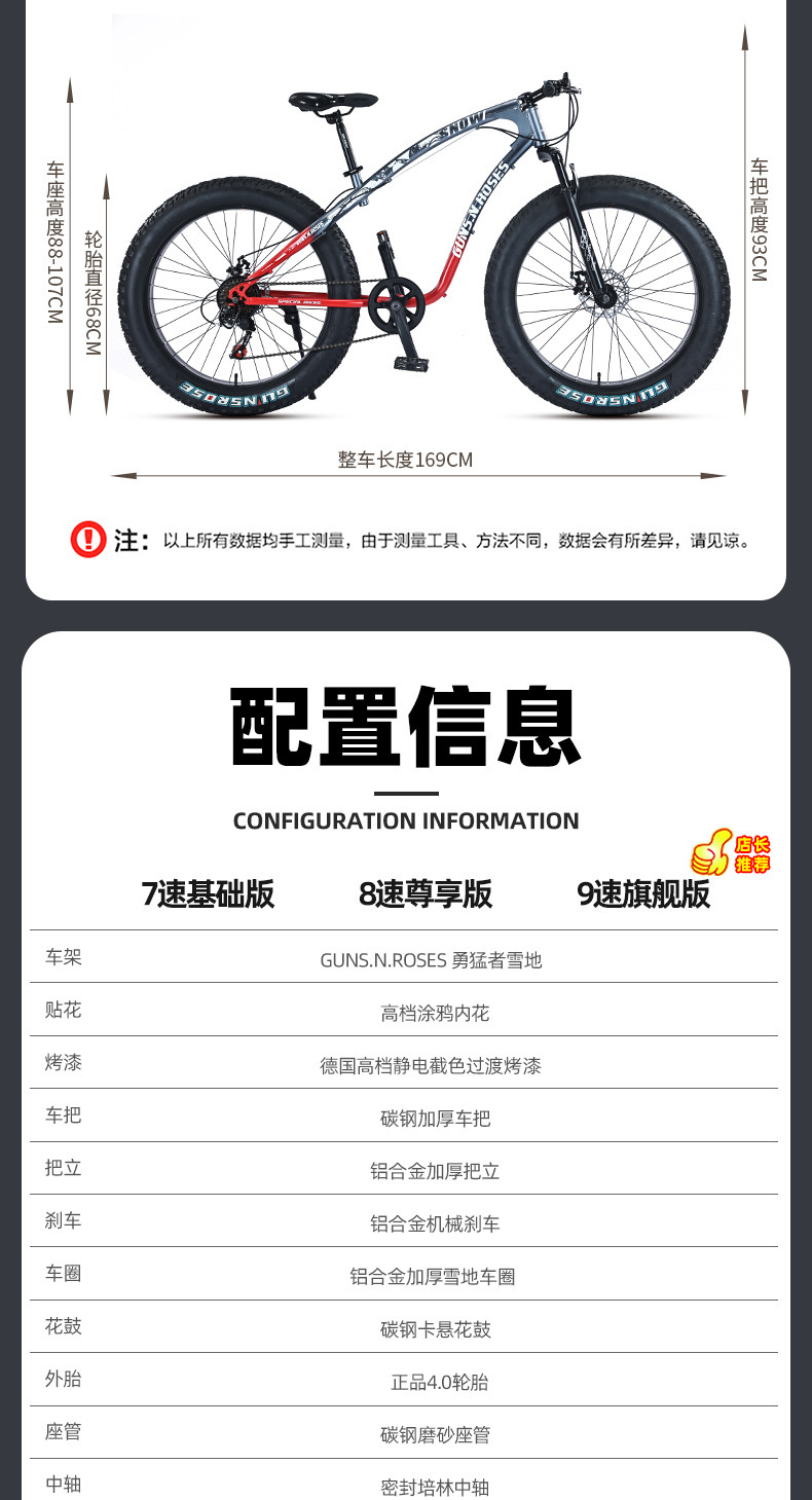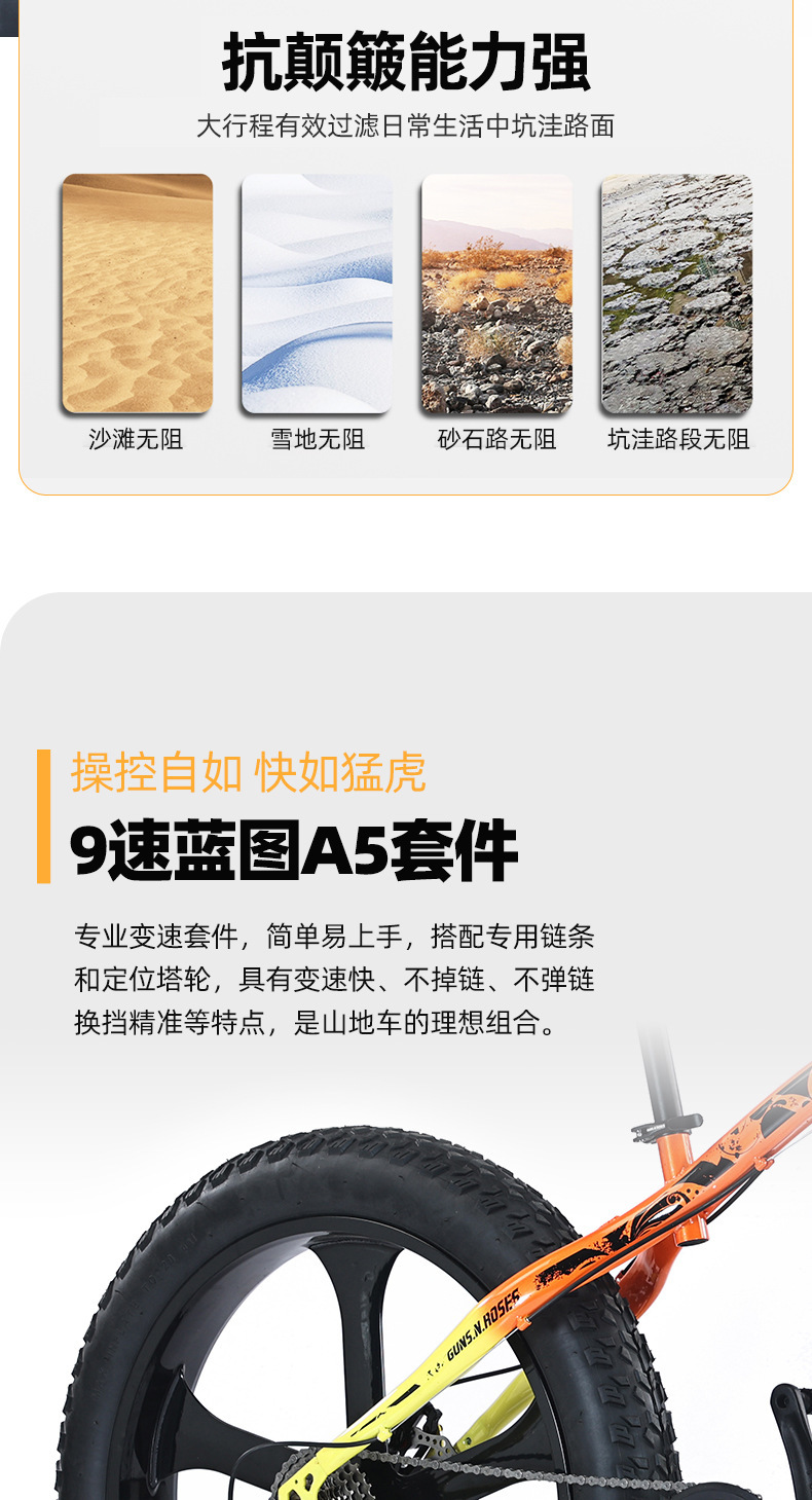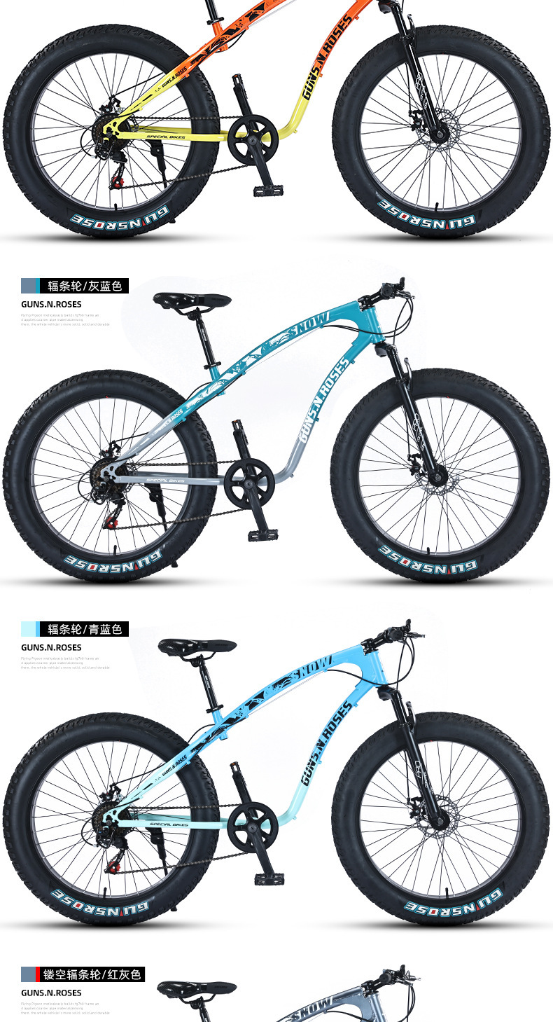 Bicicletas de montaña de playa y nieve de velocidad variable amortiguamiento adulto 4.0 neumáticos grandes para estudiantes de hombres y mujeres