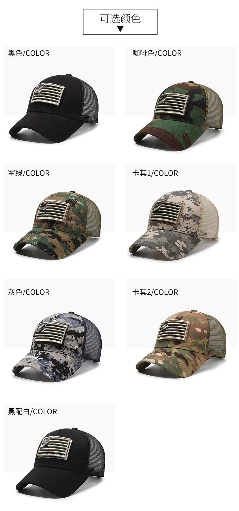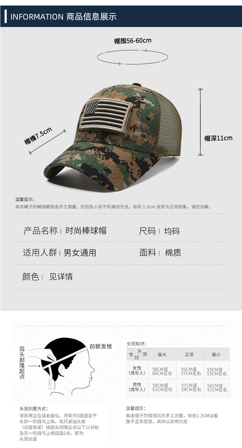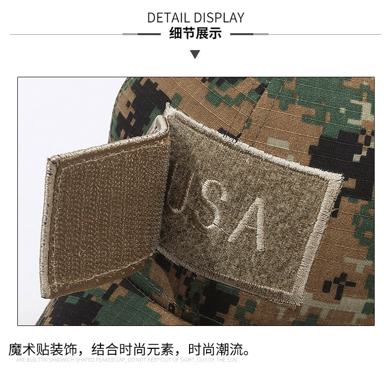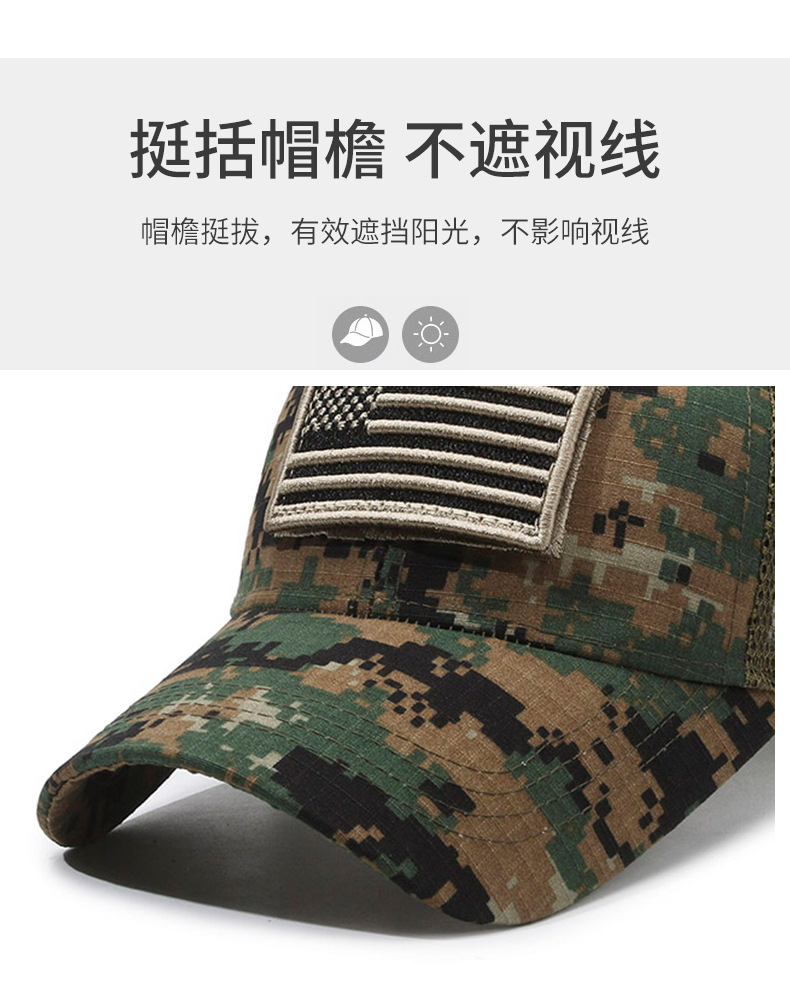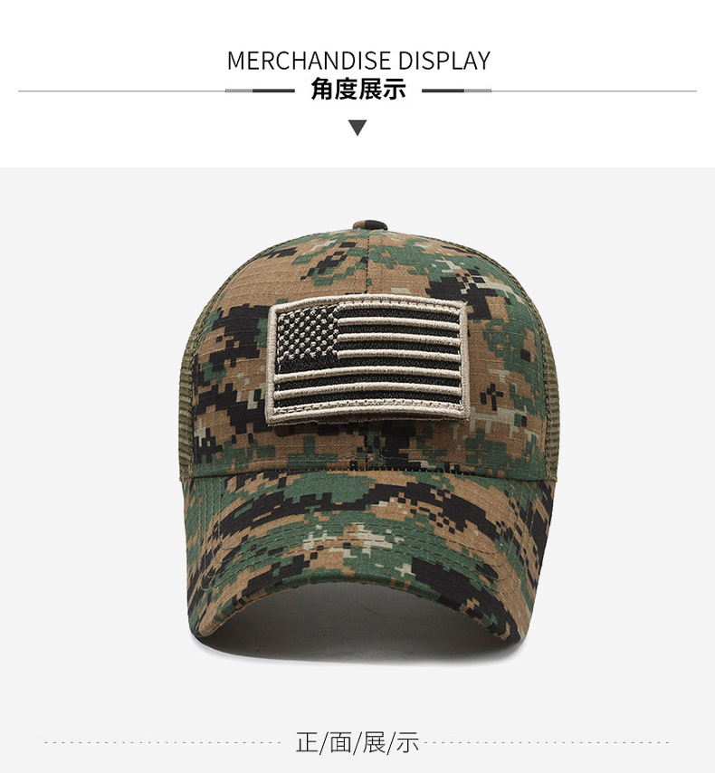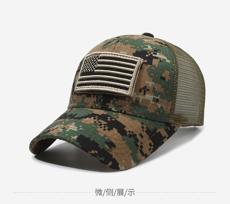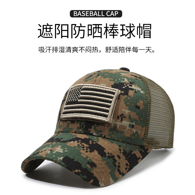 Sello estadounidense, etiqueta rasgada, gorra de velcro, moda al aire libre, protector solar, gorra de red de béisbol, sombrero de camuflaje táctico para hombres