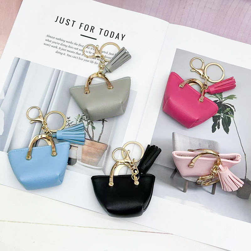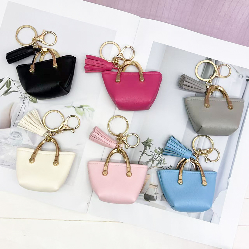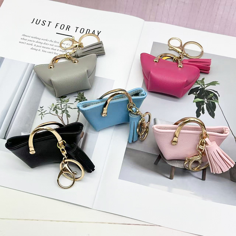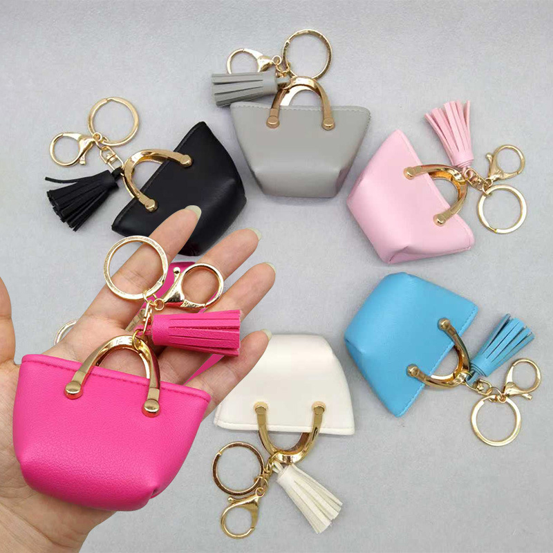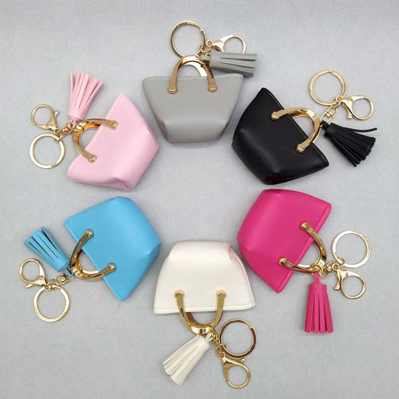 Llavero para mujer, bolso, colgante, joyería, mini monedero de almacenamiento de cuero lindo europeo y americano