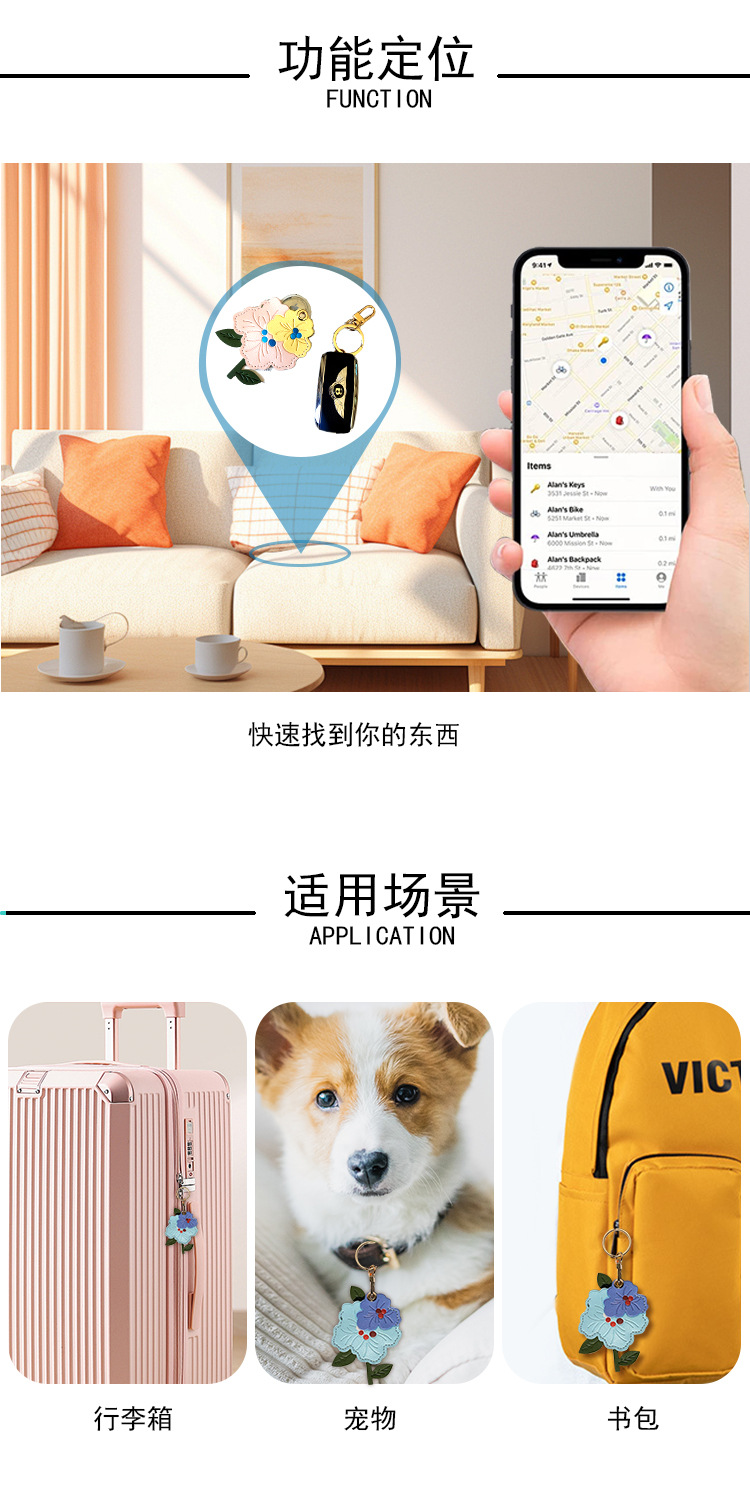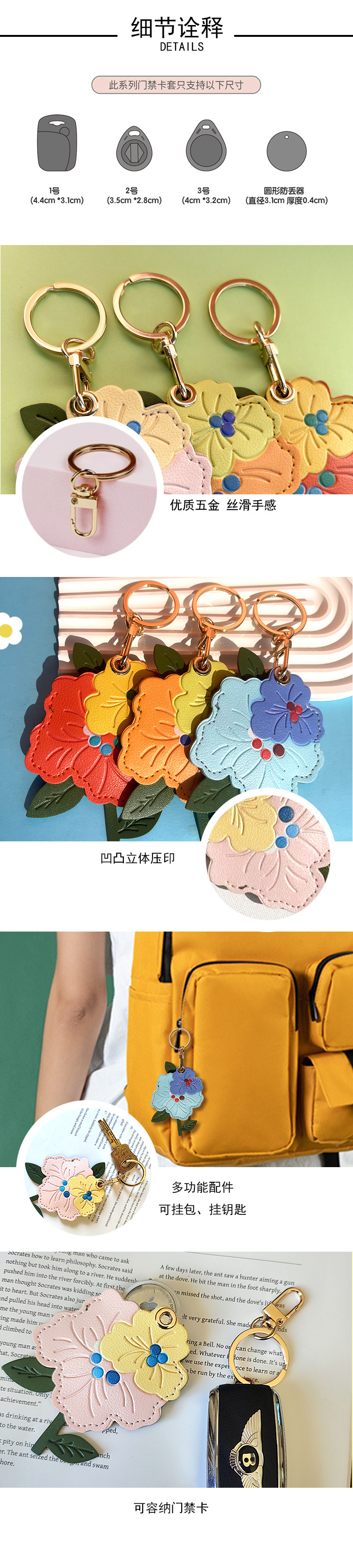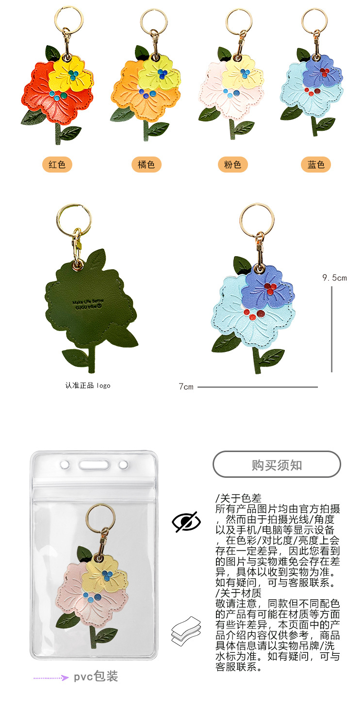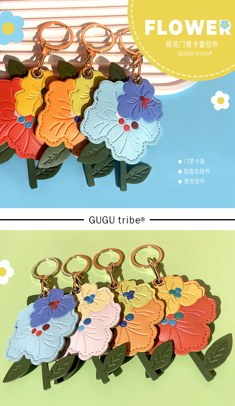 Venta caliente transfronteriza flor de durazno cuero control de acceso funda de tarjeta localizador funda protectora llavero colgante de regalo llavero