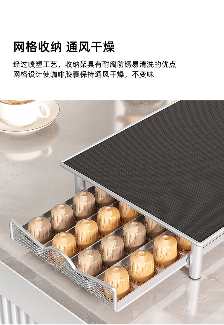 Se puede etiquetar y emitir en nombre de la caja de cápsulas de café de múltiples especificaciones, estante de café tipo cajón, estante de cápsulas de café Nespresso