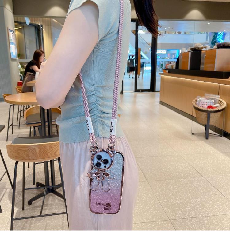 Oso electrochapado brillo 15PROMAX nuevo iPhone12/11 crossbody para Apple 13Pro teléfono caso 14