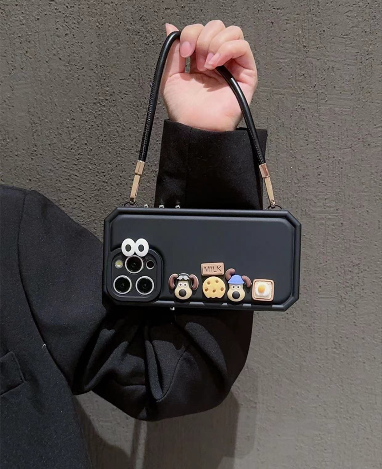 Perro tridimensional portátil de color sólido para iPhone14 piel diagonal 15ProMax funda para teléfono móvil 12 Apple 13 hombres y mujeres
