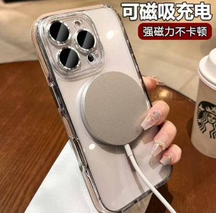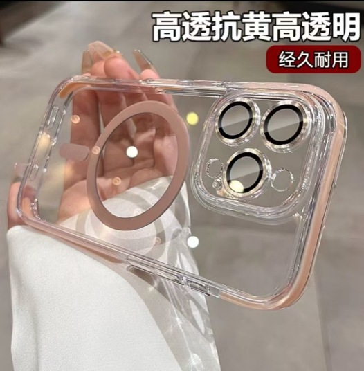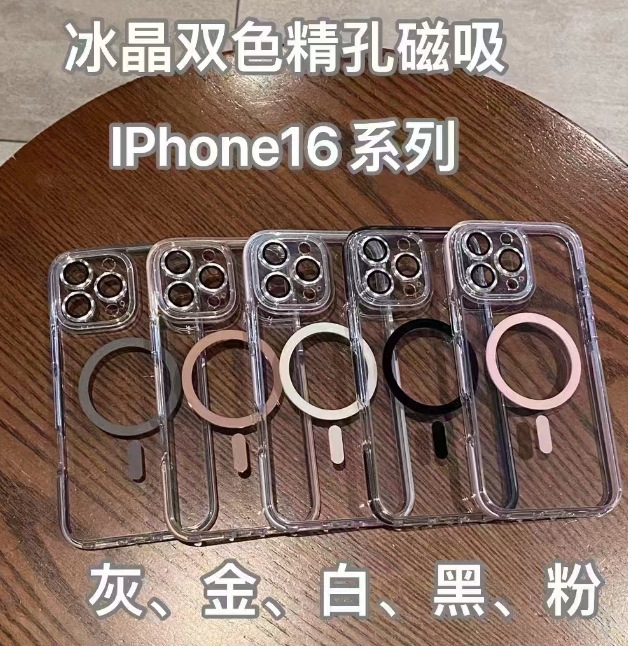 Agujero magnético de dos colores simple y transparente para iPhone16ProMax funda para teléfono móvil 14 Apple 15PM nuevo 16