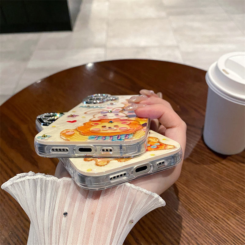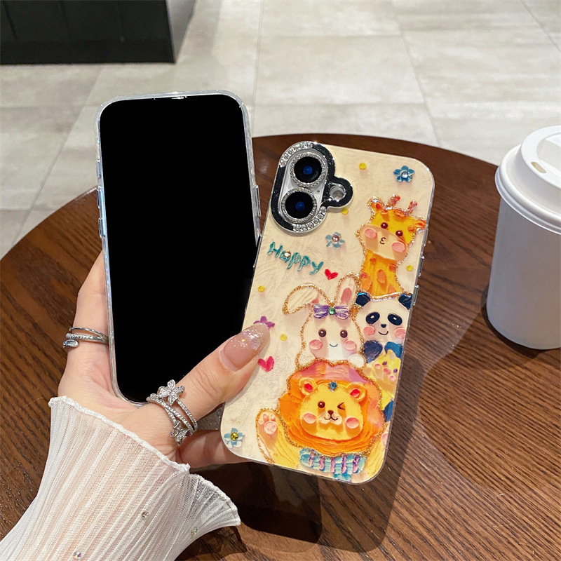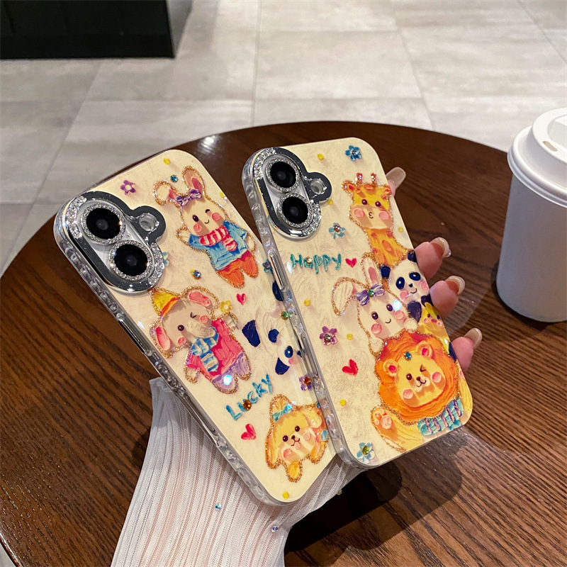 Ins Blu-ray point taladro animal de dibujos animados para iphone15/16ProMax funda para teléfono 13 Apple 14 pareja 16