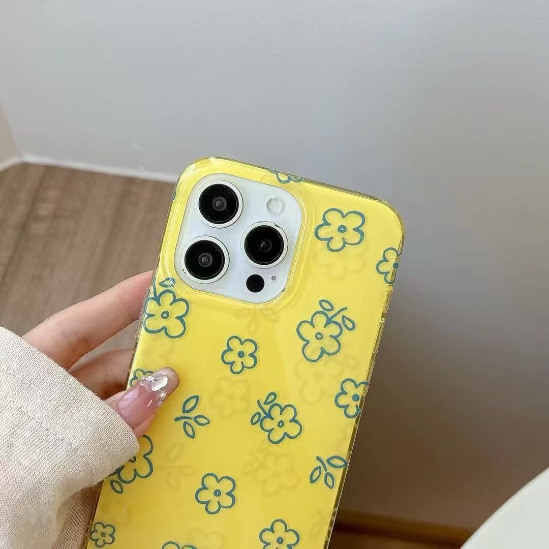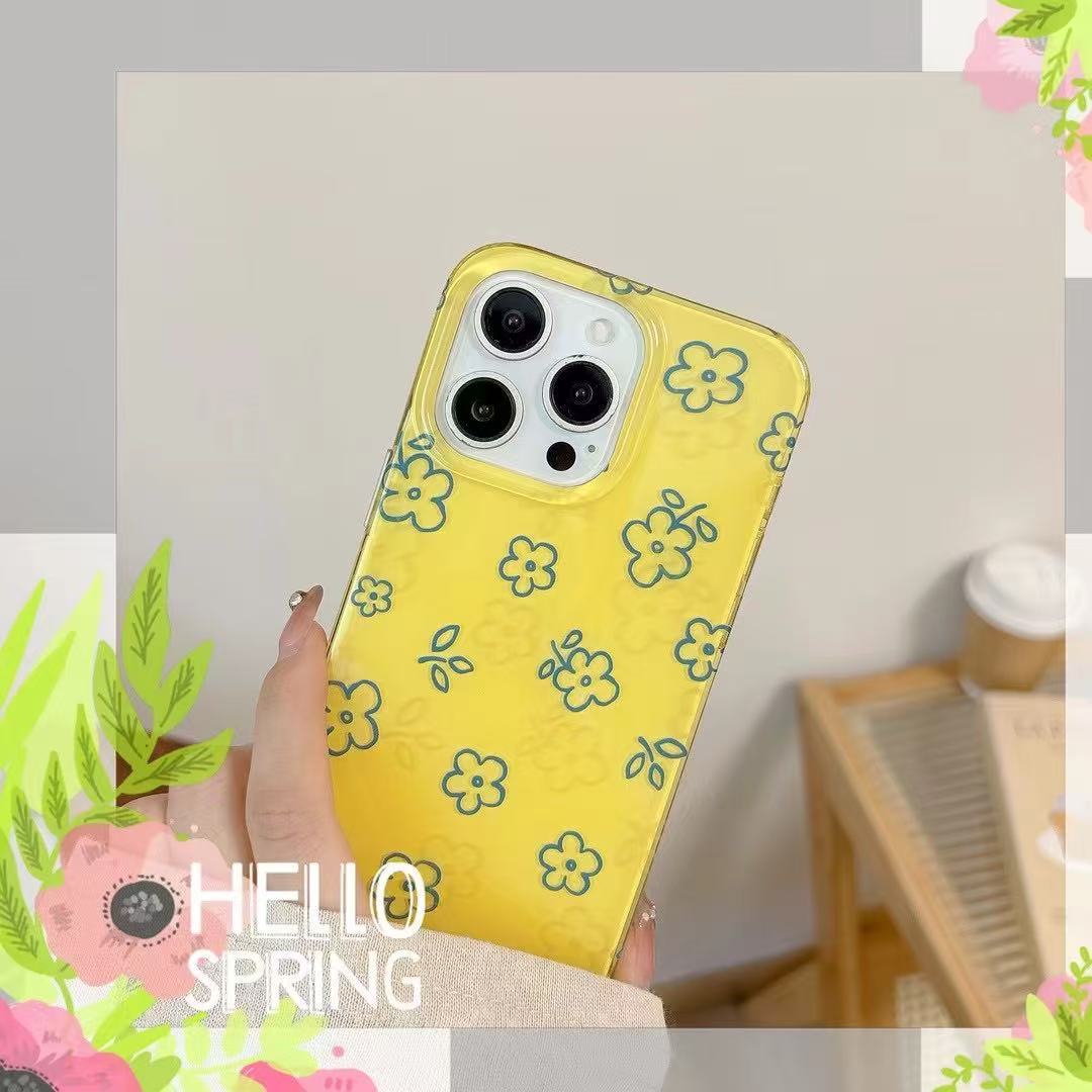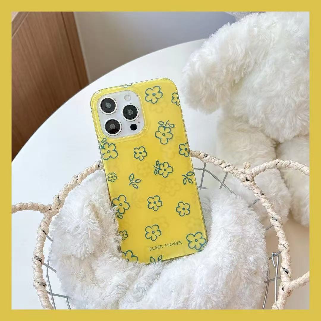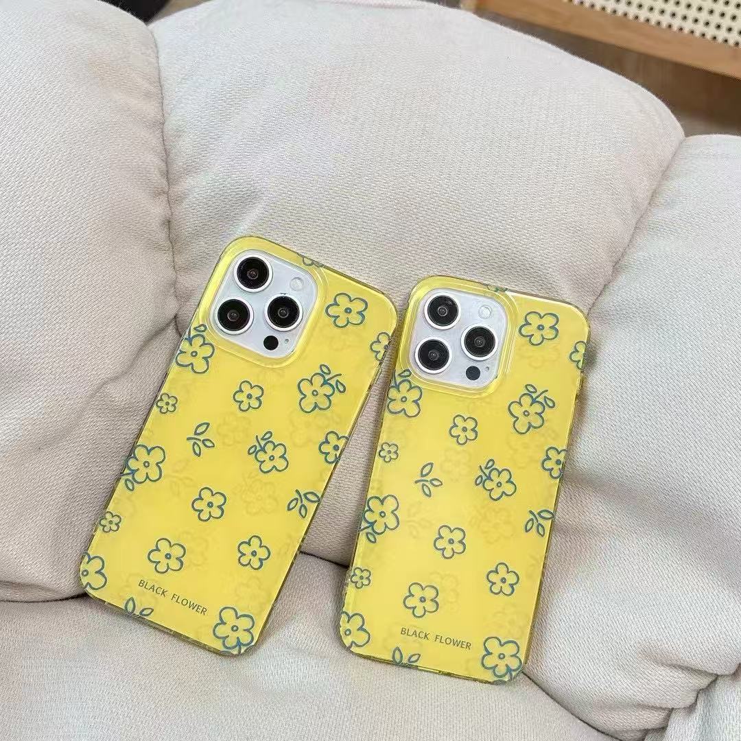Flores de línea amarilla fresca de verano para iPhone15 Apple 16ProMax funda para teléfono móvil 14 mujeres 13 nuevo