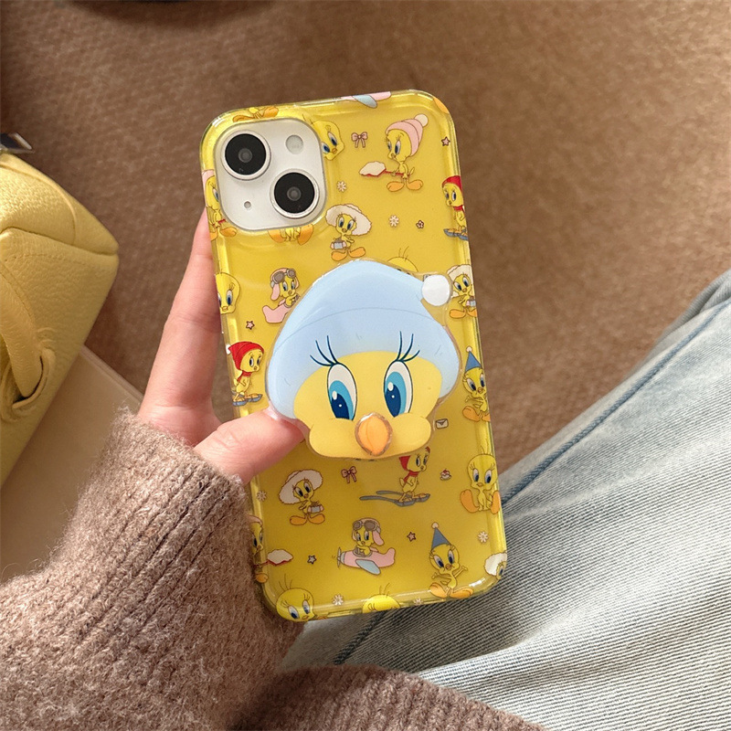 Dibujos animados lindos japoneses y coreanos pantalla completa patito amarillo adecuado para Apple 15/16promax creativo 14pro celebridad de Internet 15/16p