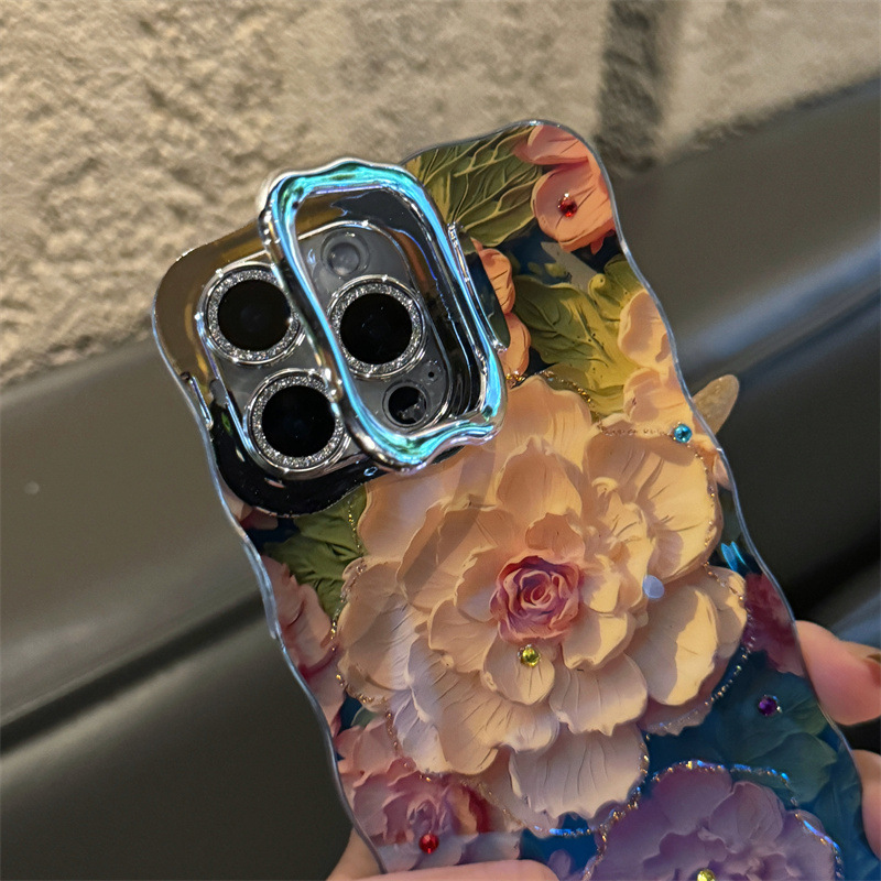 Blu-ray Point Diamond Flower 16ProMax Soporte de lente iphone15 para Apple 14 funda para teléfono móvil 13 hembra 15PM