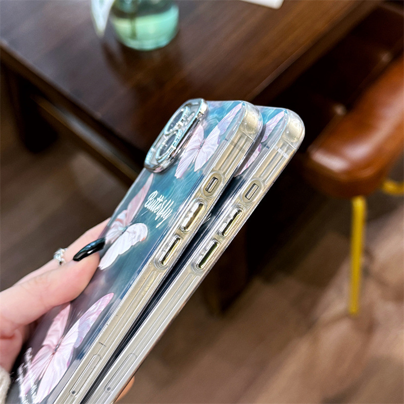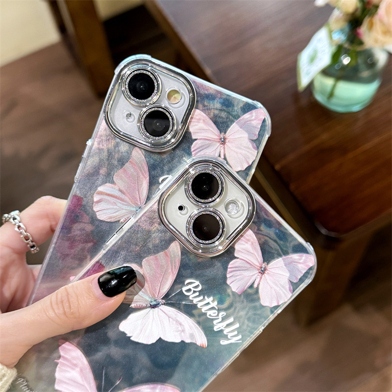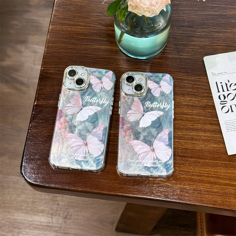 Pinturas de hilo de plumas Pinturas de tinta para mariposas para iPhone16 nuevo estuche para teléfono 16ProMax 12 Apple 14P femenino 15