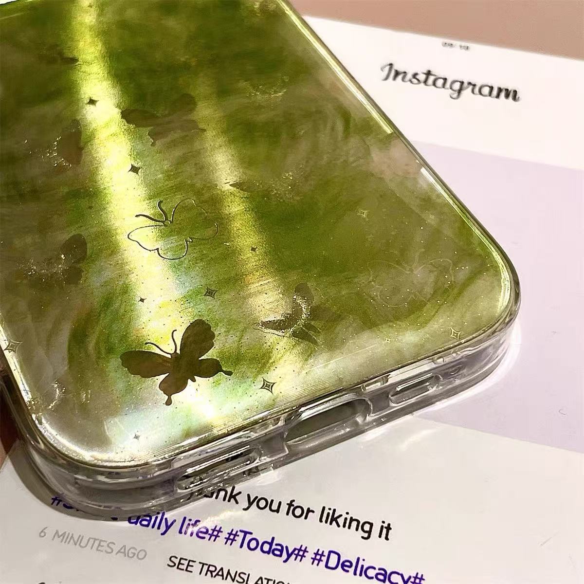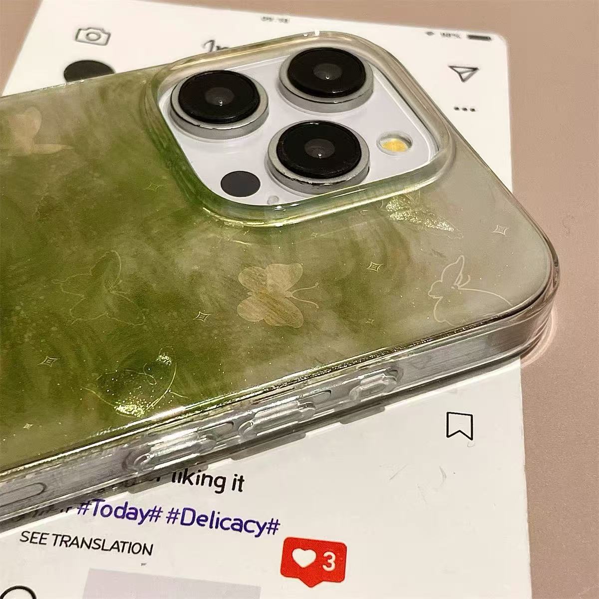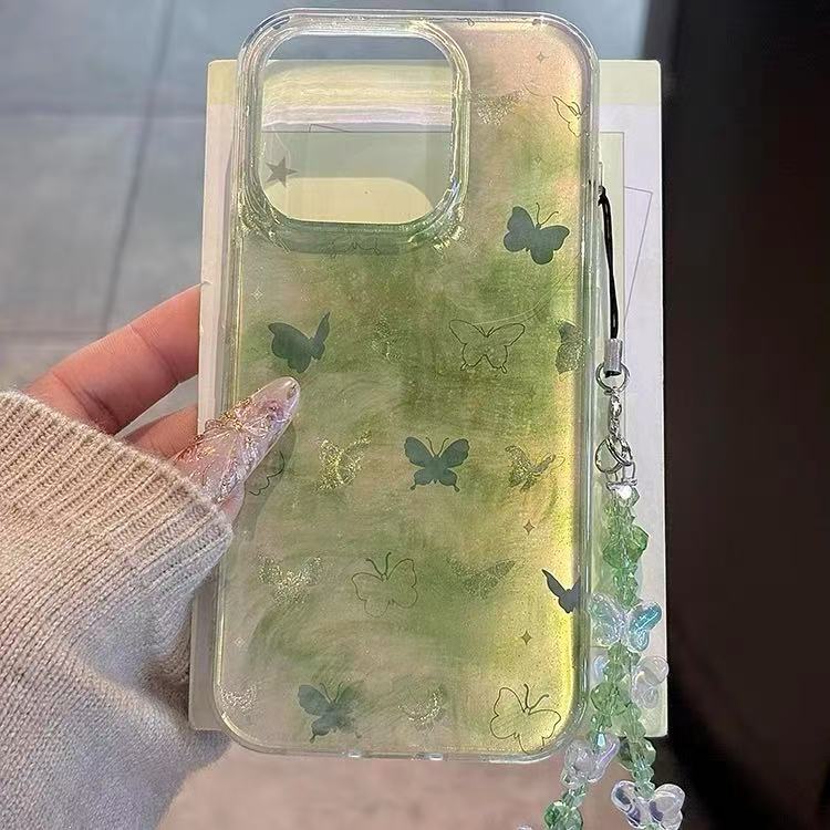 Mariposa verde manchada coreana para Apple 15promax nueva funda para teléfono móvil 16pro 14/13 nicho 16PM
