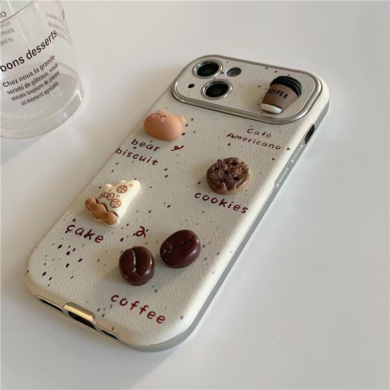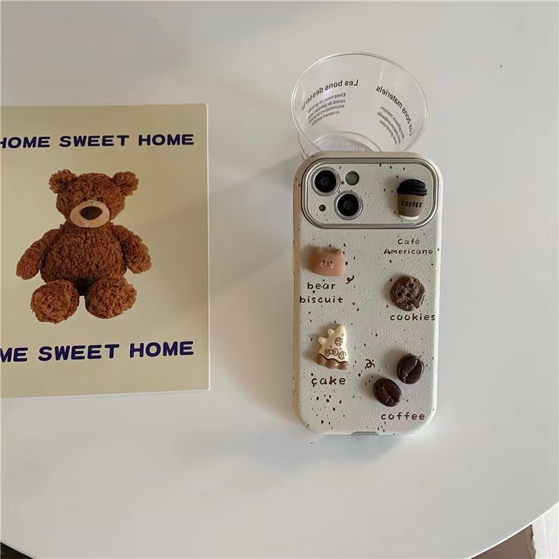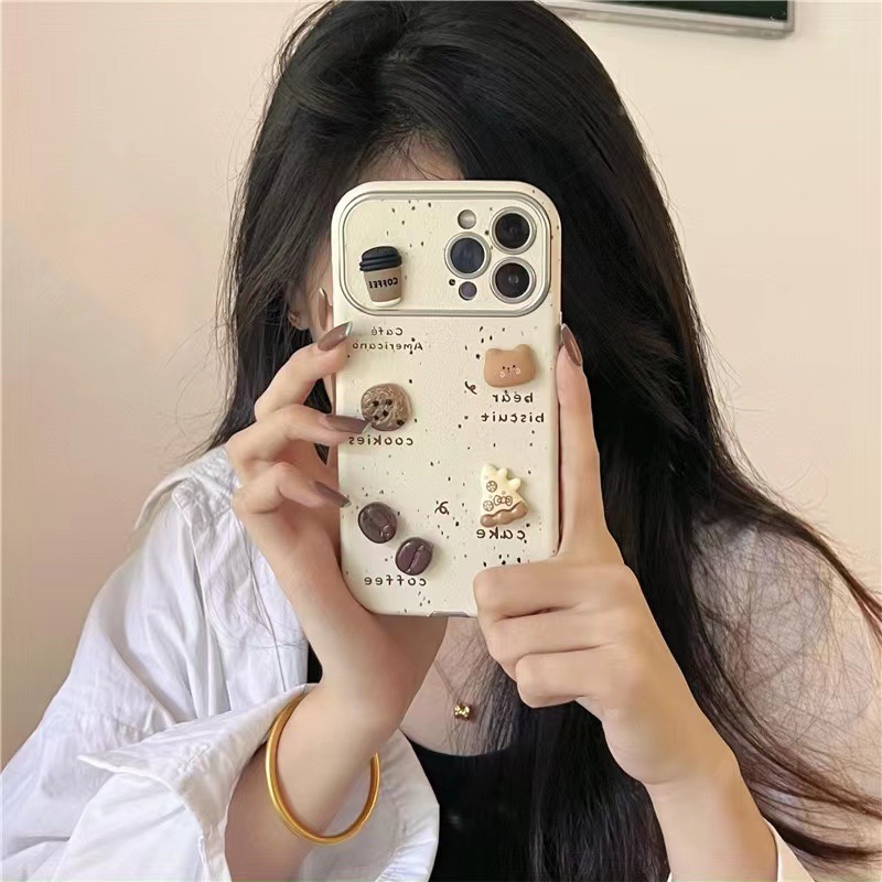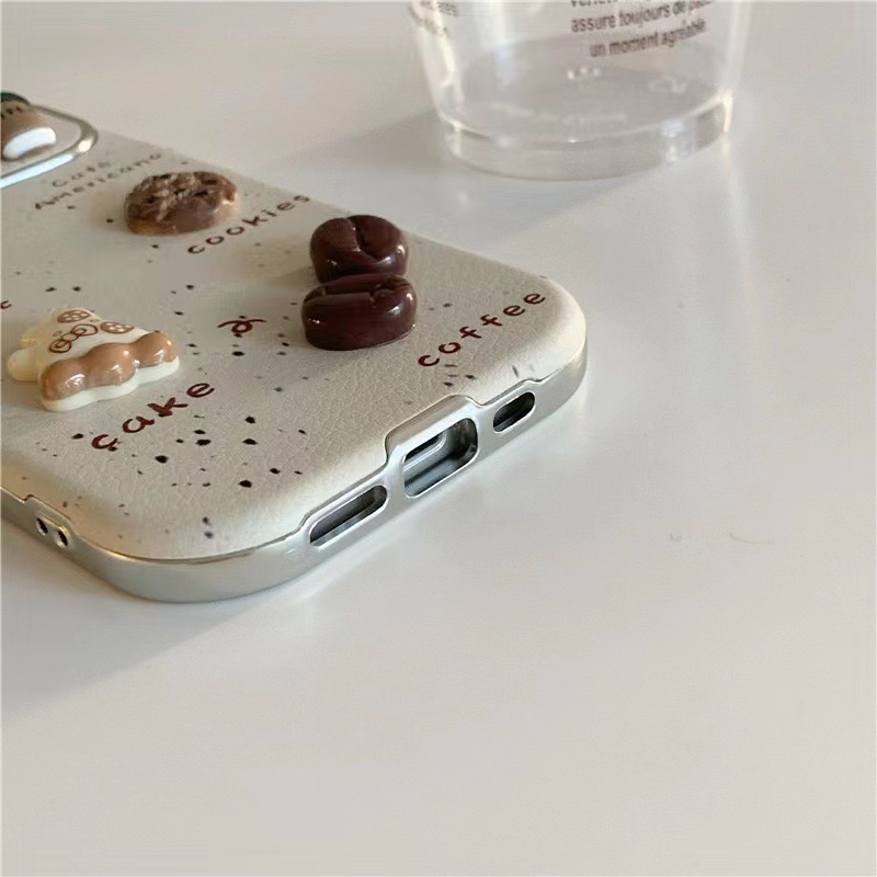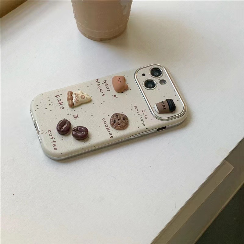 Oso de café tridimensional con salpicaduras de tinta para 16ProMax nuevo iPhone 15 Apple 14 funda para teléfono móvil 13 cuerda de mano 11