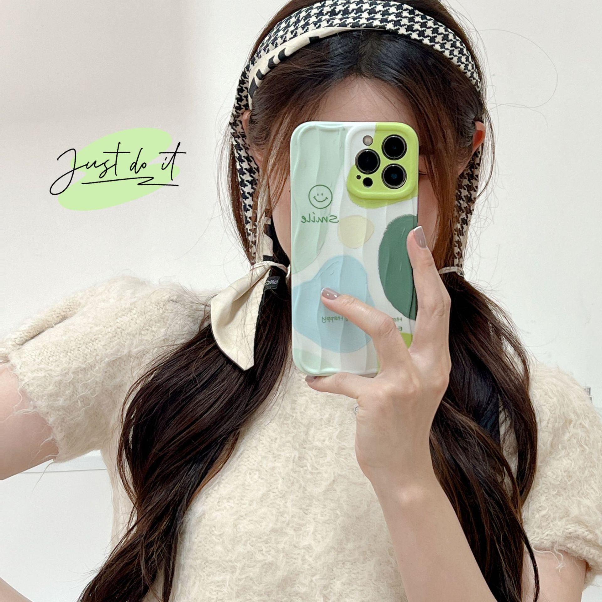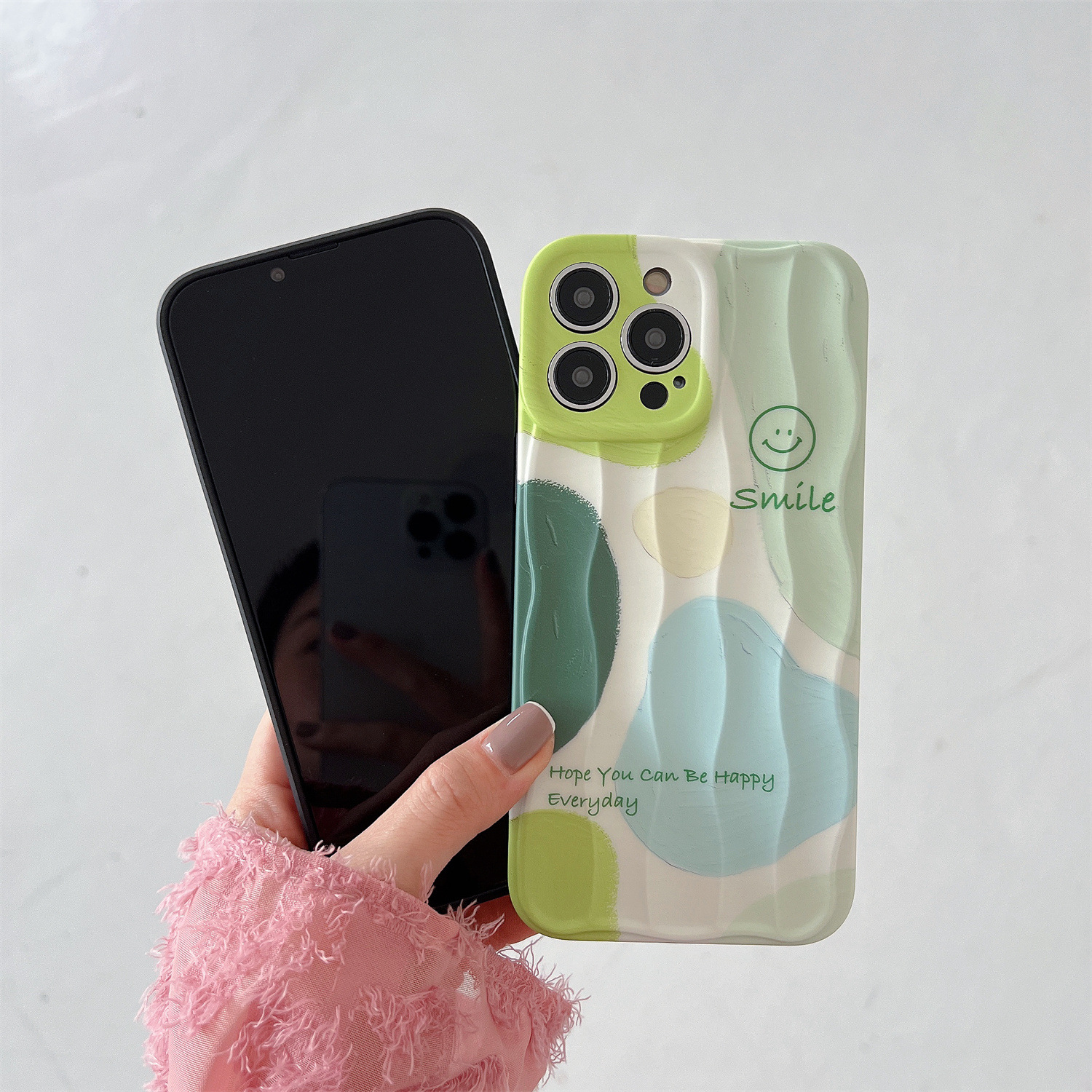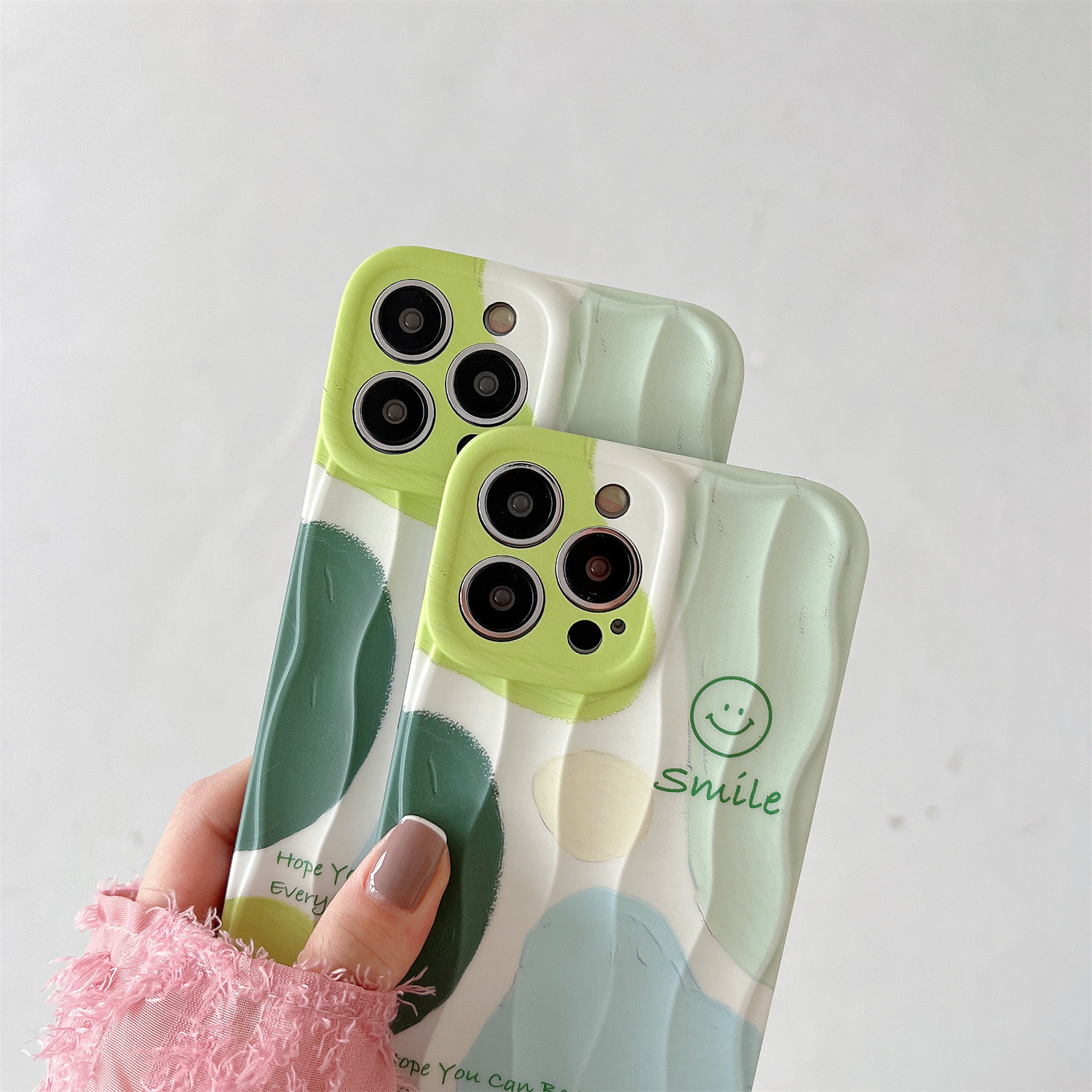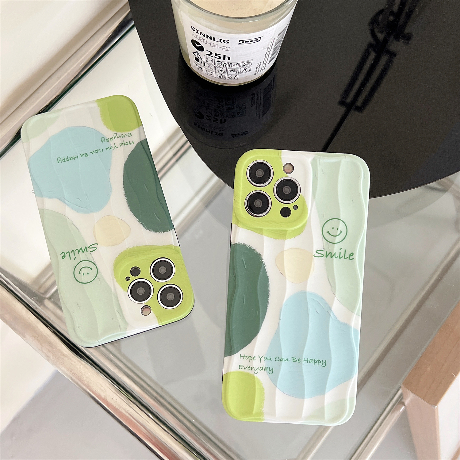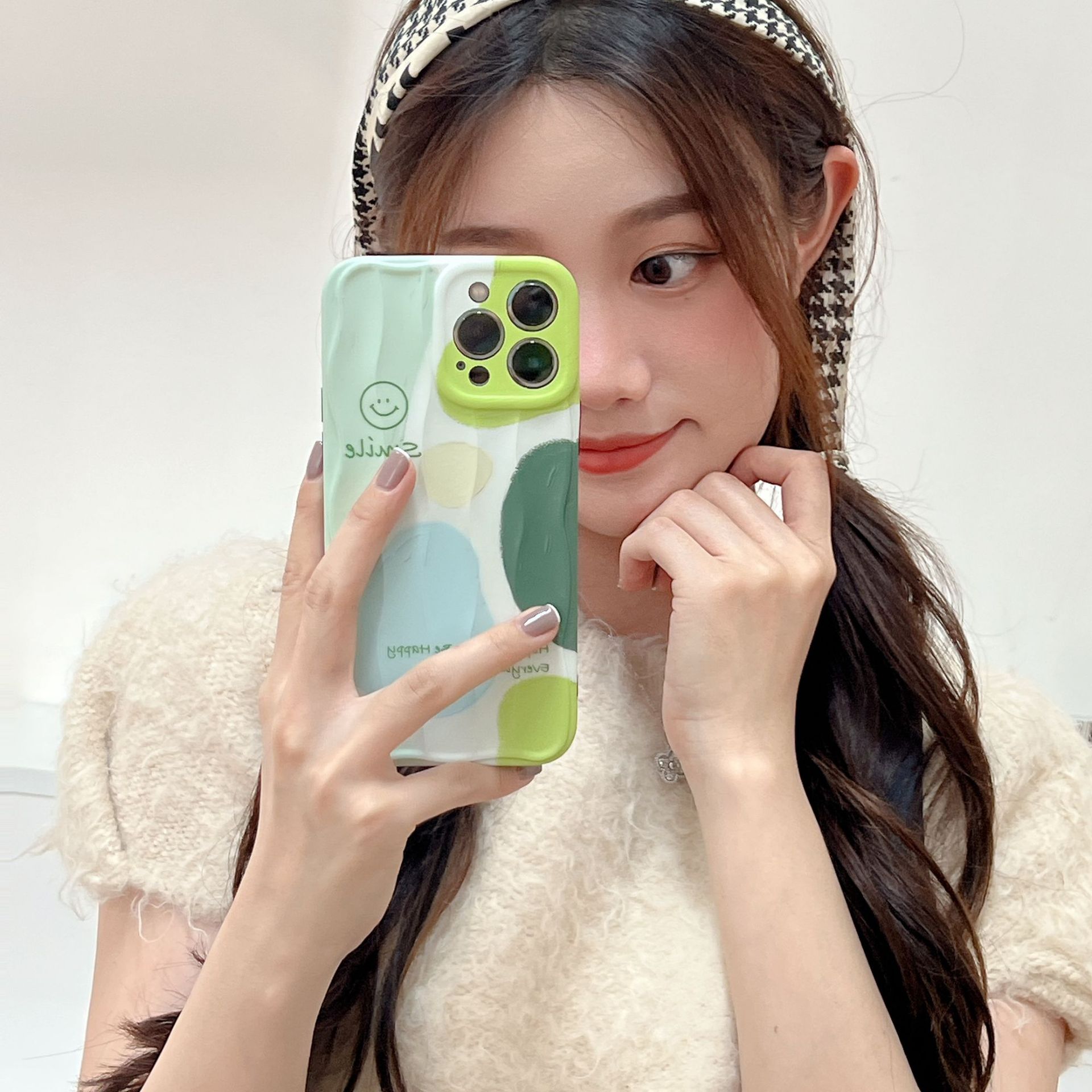 INS azul verde bloque cara sonriente para iPhone15/11 simple 13PROMAX teléfono caso Apple 14 hembra 12PM